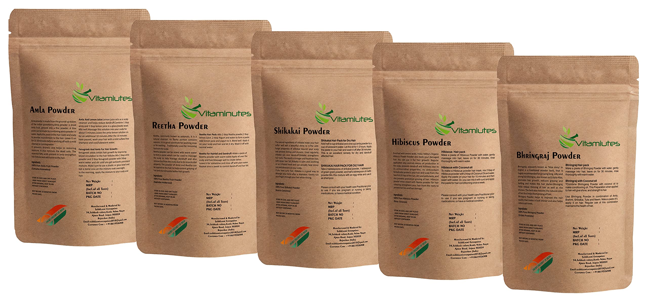 VITAMINUTES Bio Organic Amla Reetha Shikakai Hibiscus Bhringraj | Hair Growth | Anti-Dandruff | Hair Pack (40 gm Each) (200 gm)