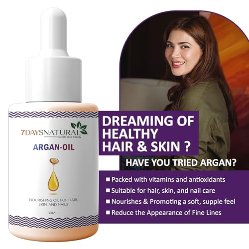 7 Days Argan Oil | Hair Growth Healthy Hair Nails Skin Moisturising Stretch Marks Lips & Eye Puffiness for Men & Women |100% Pure Organic & Natural | 30Ml