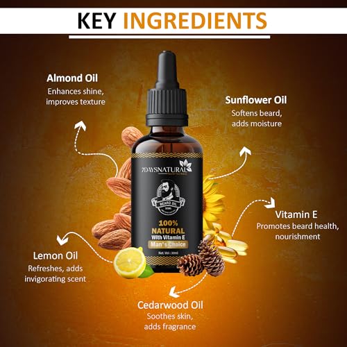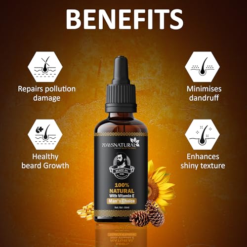 7 Days Beard Oil Hair Growth Oil | Natural Hair Oil for Thicker & Longer Beard | Beard Oil for Uneven | Patchy & Fast Beard Growth(30 Ml)(Pack of 2)