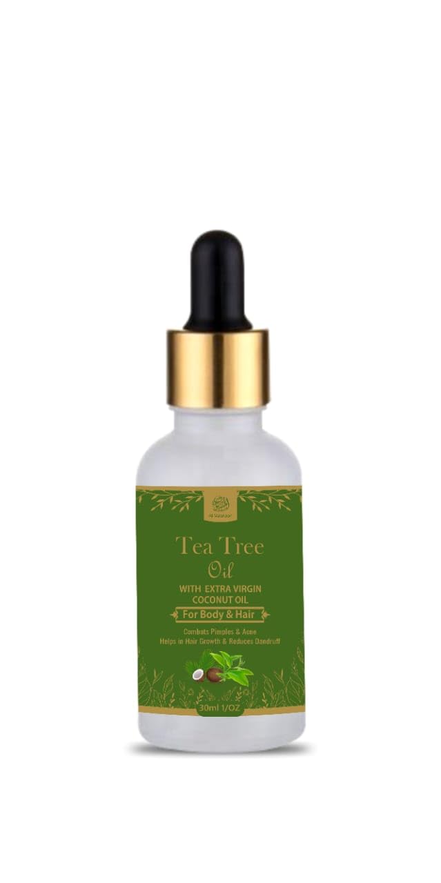 Elevate your self-care routine with Al Masnoon Tea Tree Oil with Extra Virgin Coconut Oil your go-to solution for healthy skin nourished hair and overall well-being. Perfect for those seeking natural remedies for skin and hair concerns.Experience the potent combination of Al Masnoon Tea Tree Oil with Extra Virgin Coconut Oil meticulously crafted to enhance your body and hair care regimen naturally. This 30ml bottle offers a harmonious blend of organic essential oils renowned for their therapeutic benefits.