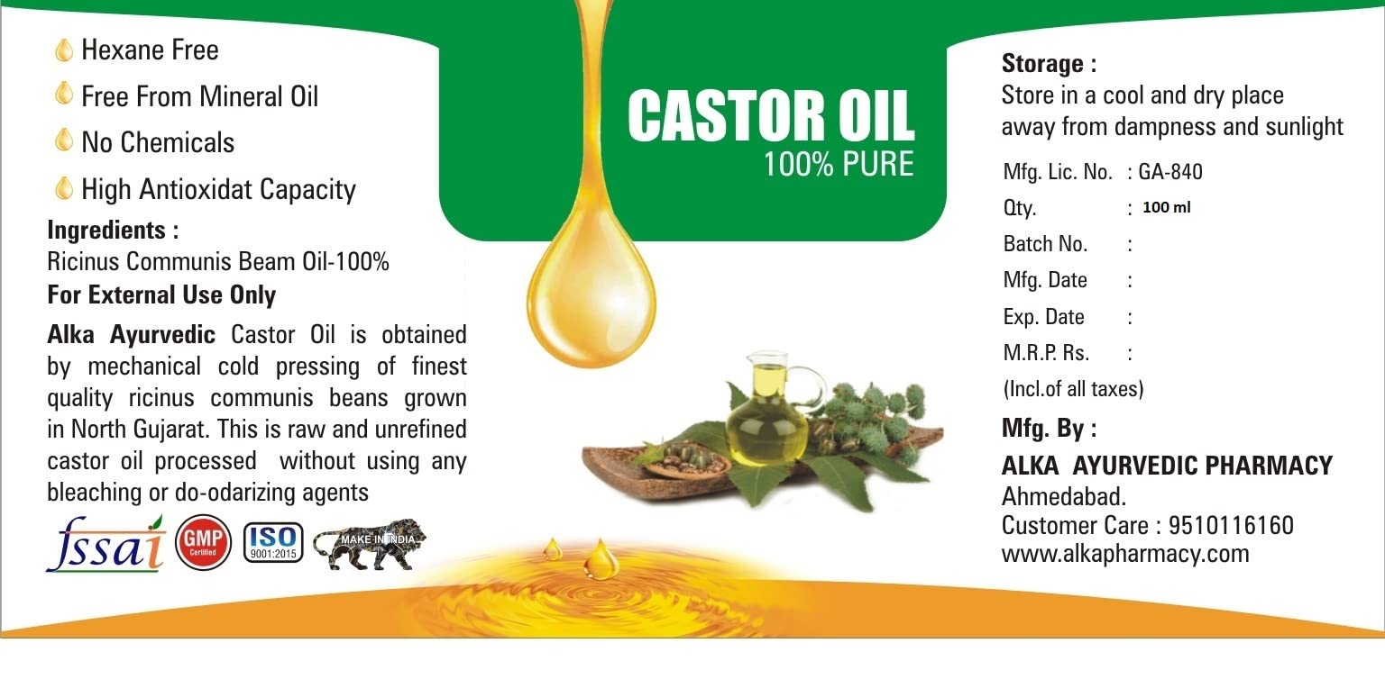 Alka Ayurvedic Pharmacy Castor Oil for Skin Care Hair Growth (Arandi Oil) | Premium Cold Pressed | Pure & Virgin Grade 100ml