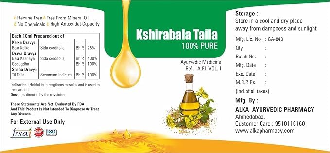 Alka Ayurvedic Pharmacy Pure & Natural Kshirabala Taila Oil Improves General Health & Wellness Naturally (100ML)
