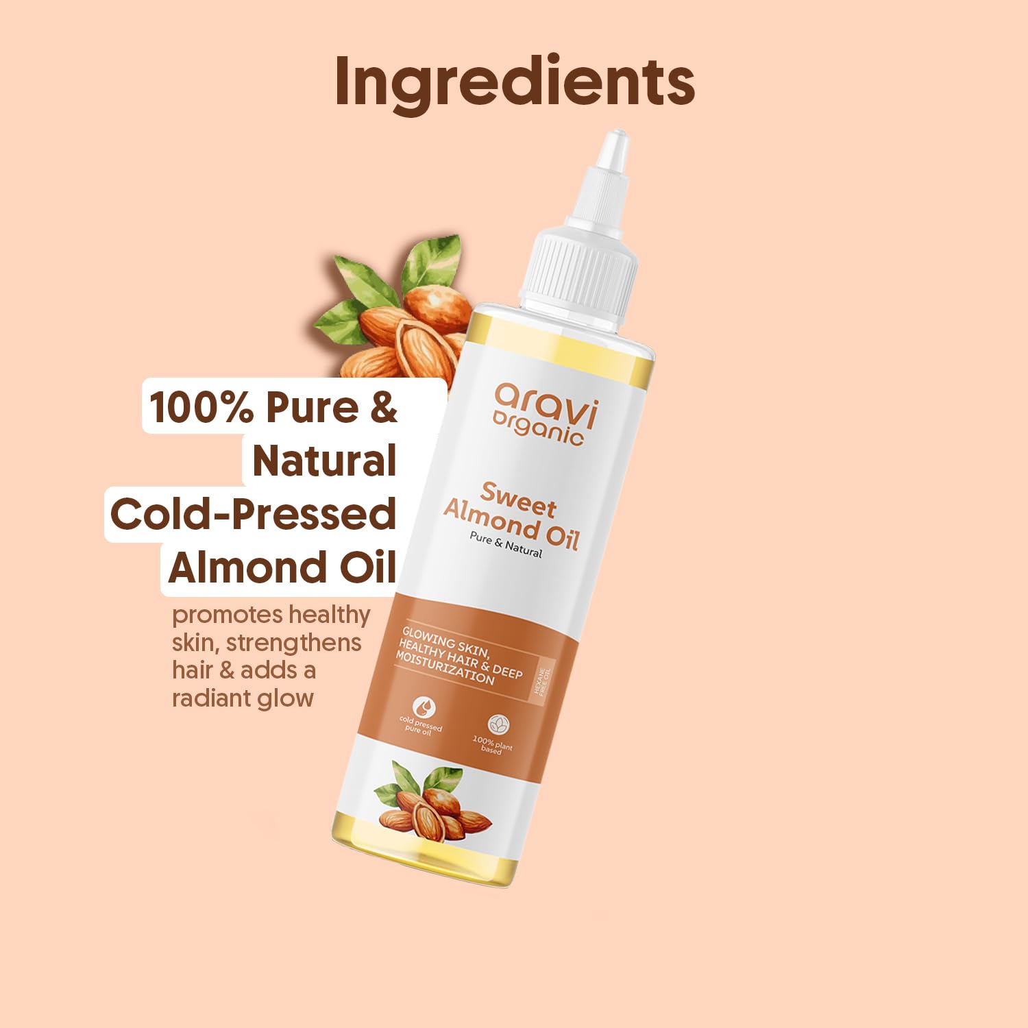 Indulge your senses and nourish your body with Aravi Organicâs Almond Oil and Peppermint Essential Oil. Our cold-pressed 100% pure oils are crafted to deliver maximum benefits without any additives or preservatives.