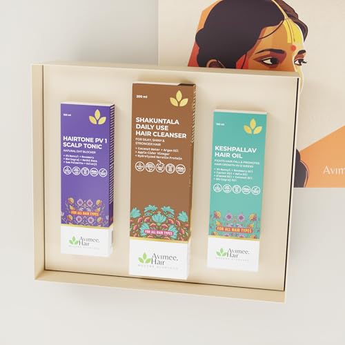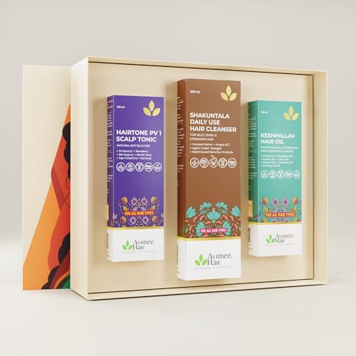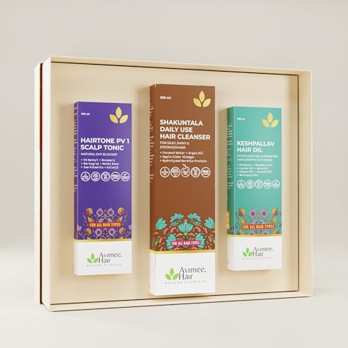 Introducing the Avimee Herbal Gift Box your comprehensive solution to promote overall hair health and prevent those dreaded hair fall issues. This combo combines the power of three exceptional products: Keshpallav Hair Oil: Infused with natural ingredients like Rosemary Amla Methi and Bhringraj this hair oil is your secret weapon for stronger healthier locks. It deeply nourishes your hair from the roots stimulates hair growth and minimizes hair fall. Hairtone PV 1 Scalp Spray: This scalp spray is specially designed to target hair fall concerns at the source. Enriched with essential nutrients it revitalizes your scalp strengthens hair follicles and reduces breakage ensuring your hair stays firmly rooted. Shakuntala Hair Cleanser: The perfect companion for your hair care routine this herbal cleanser is packed with Aloe Vera Apple Cider Vinegar Rice Protein and Keratin Protein. It gently cleanses your hair leaving it silky shiny and strong without any harmful chemicals. Say goodbye to hair fall worries and hello to luscious vibrant hair. With the Avimee Herbal Gift Box you're on your way to a head full of healthy beautiful hair. Trust the power of nature to transform your locks!
