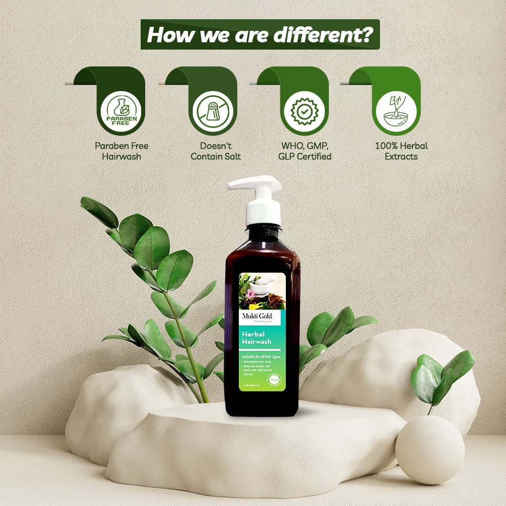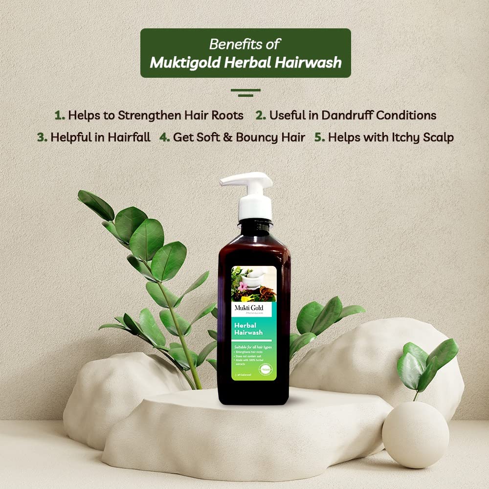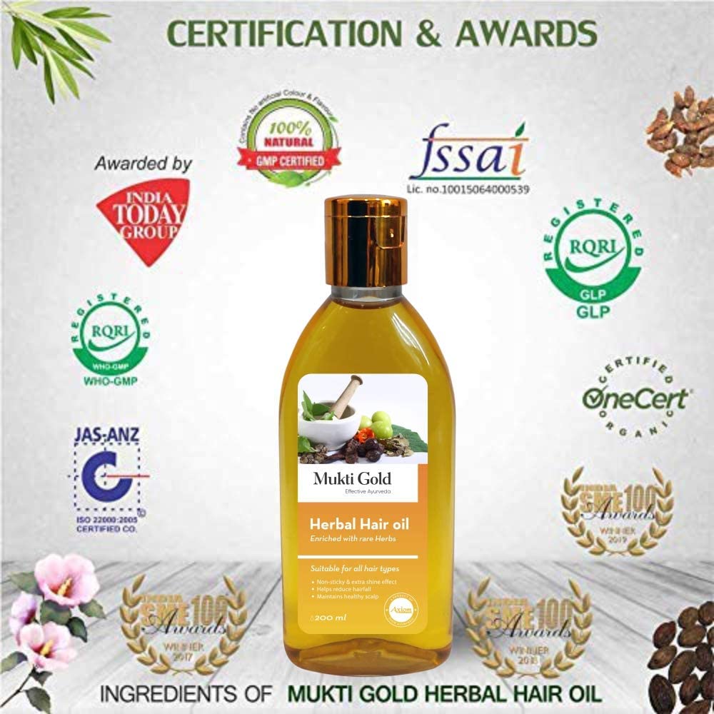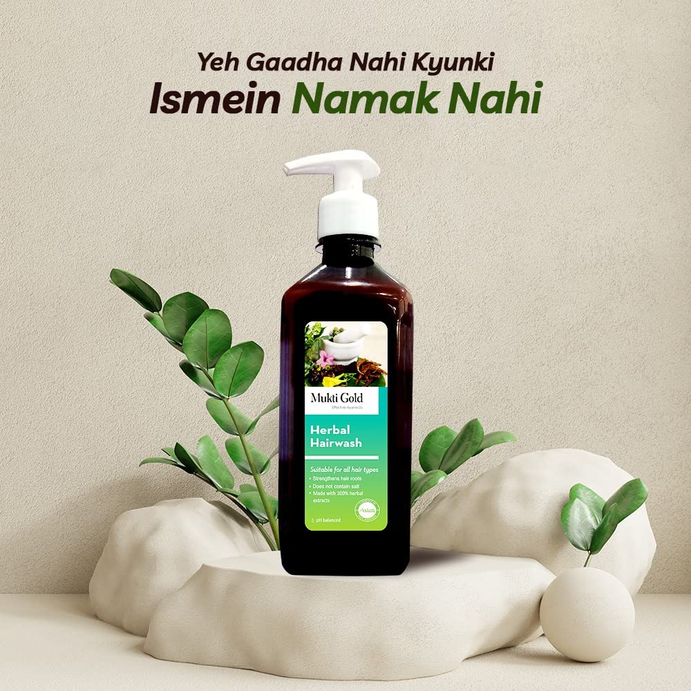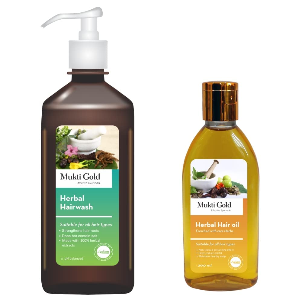 Axiom Mukti Gold Hair Care Combo | Herbal Hairwash 400Ml (Dispenser) + Hair Oil (200Ml) | Who-GlpGmp Certified Product | Enriched With Aloevera & Amla Herbs