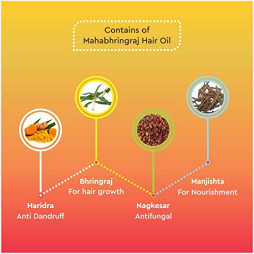 Mahabhringraj Tel is pure Ayurvedic chemical free nourishing hair oil made scientifically with goodness of Bhringraj an herb which is known in Ayurveda as ‘Keshraj- king of hair which helps your hair grow longer and healthier. The tail is prepared by Traditional Ayurvedic methods (Kshirpak vidhi) with a combination of 15 valuable clinically proven herbs dipped in pure Til tail (Sesame oil). This process with till tel as base oil will help to extract the entire medicinal qualities from the herbs giving us potent Mahabhringraj tel. Regular gentle massage of this therapeutic hair oil on the scalp will help control hair fall strengthen hair from their roots and is a helpful remedy for Dandruff. Its a 100 % Natural formulation free from mineral oils No silicone No synthetic colors and fragrances.