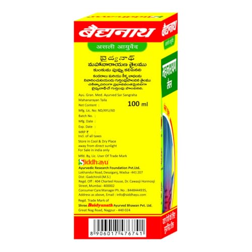 Baidyanath Mahanarayan tail is an Ayurvedic oil widely used for relief from Vata Roga (joint and muscular pains). Enriched with goodness of pure Saffron which is clinically proven to reduce inflammation in joint pain. This property is accepted by modern science also. Daily massage with this oil helps in relieving pain and stiffness of joints and muscles.
