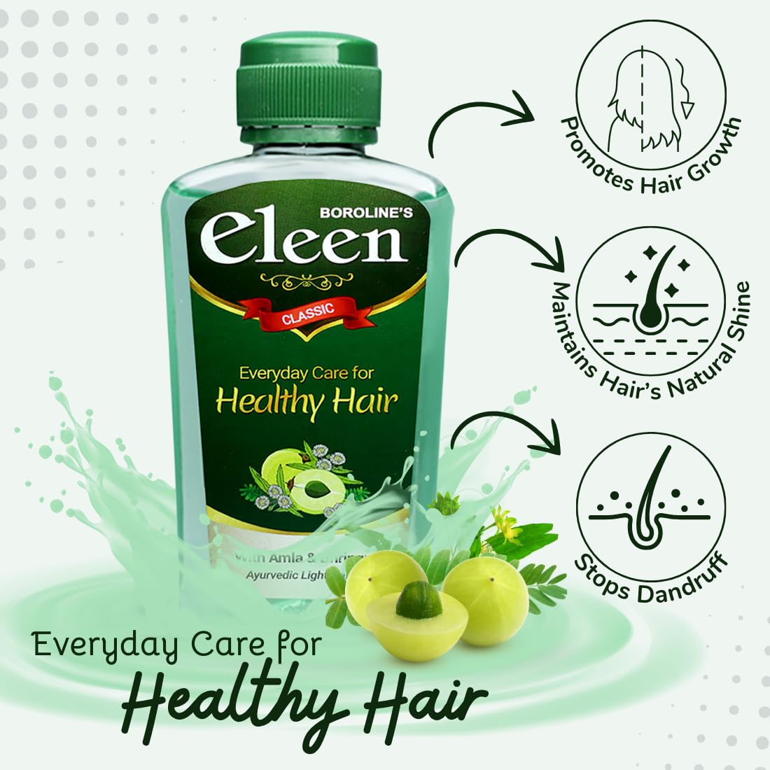 BOROLINE Eleen Classic Herbal Light Hair Oil 200 ml X 3 | With Amla & Bhringraj | Best Hair Growth & Anti Dandruff Hair Oil | Reduces Hair Fall | For Men & Women (Pack of 3)