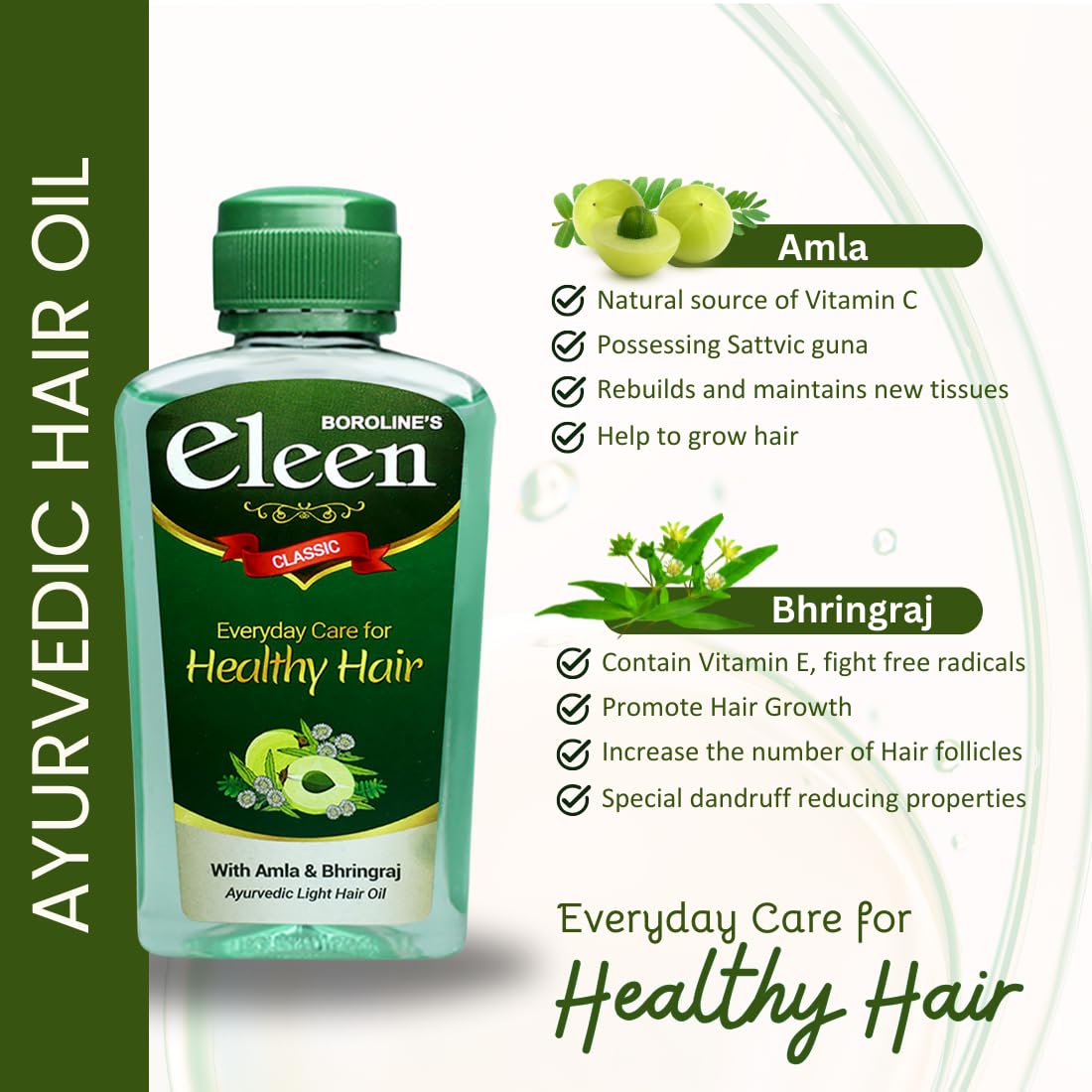 HomeHealth & PersonalHair CareHerbal Hair OilBOROLINE Eleen Classic Herbal Light Hair Oil 200 ml X 3 | With Amla & Bhringraj | Best Hair Growth & Anti Dandruff Hair Oil | Reduces Hair Fall | For Men & Women (Pack of 3)