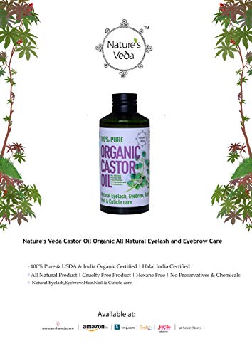 Nature's Veda Organic Castor Oil 200ml - 100% Pure & USDA & India Organic Certified Oil, Growth All Natural Eyelash and Eyebrow Care, Pure Castor Oil for eyelashes, Hair Nail & Cuticle Care Oil