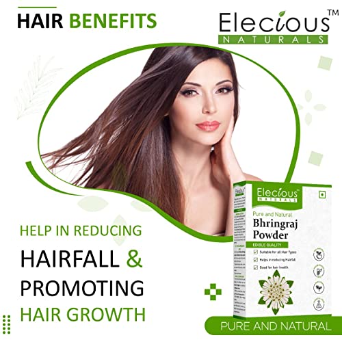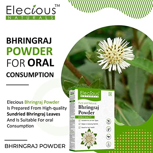Elecious Pure Bhringraj Powder for hair growth (200 Grams) and Eating | Edible | Ideal for Hair pack, Hair oil and oral consumption | 100% Natural, Preservative free