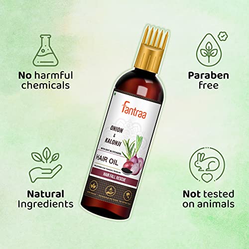 Fantraa Onion oil and Kalonji Hair oil With COMB APPLICATOR For Controls Hair Fall Rescue Hair Oil (200 ml)