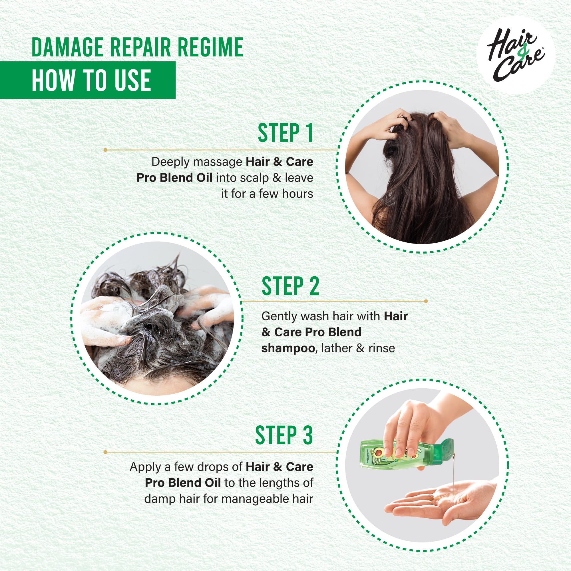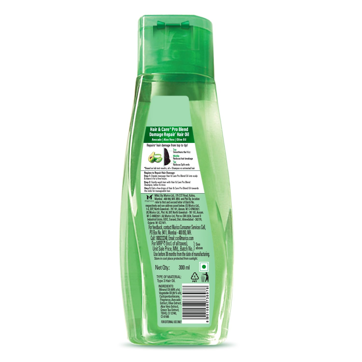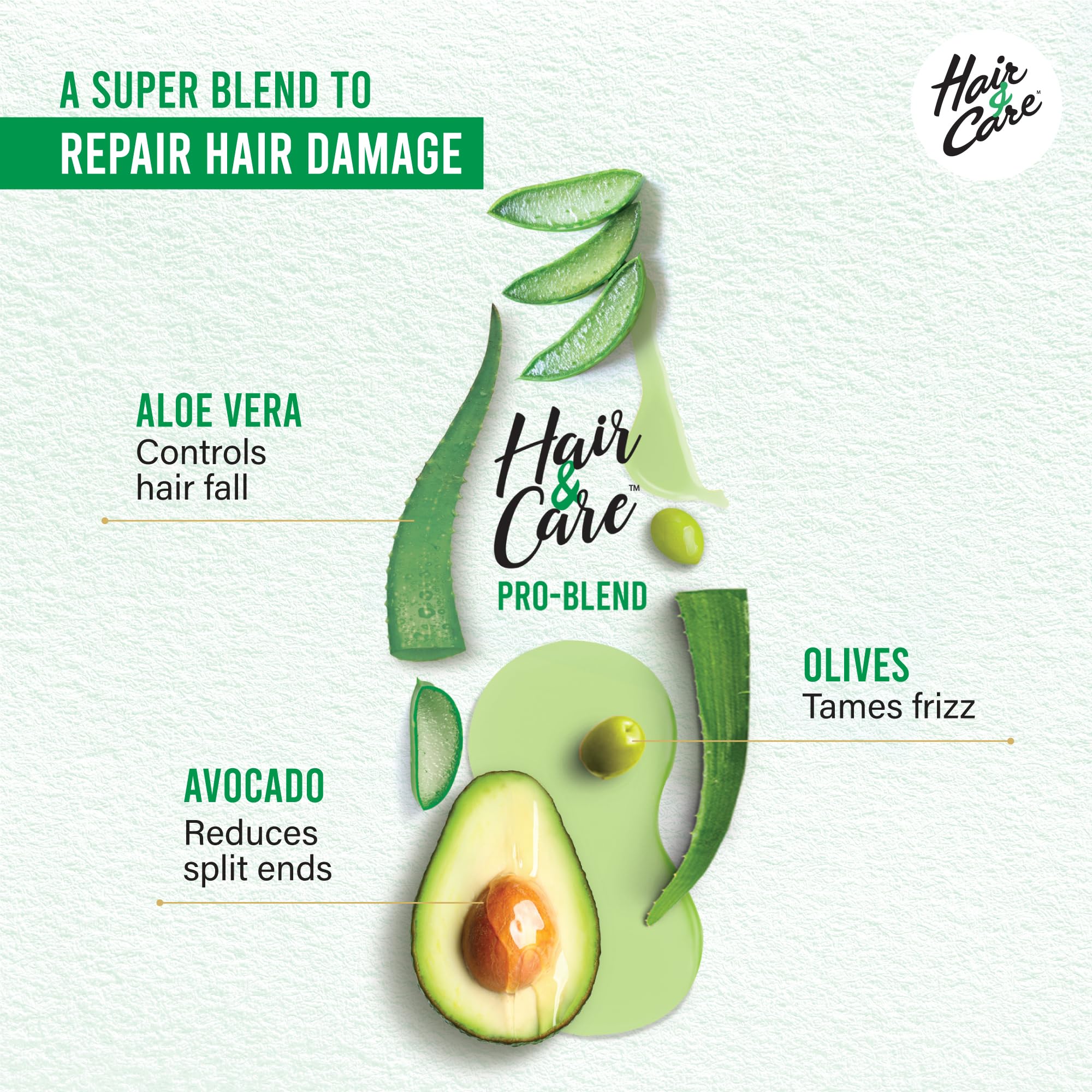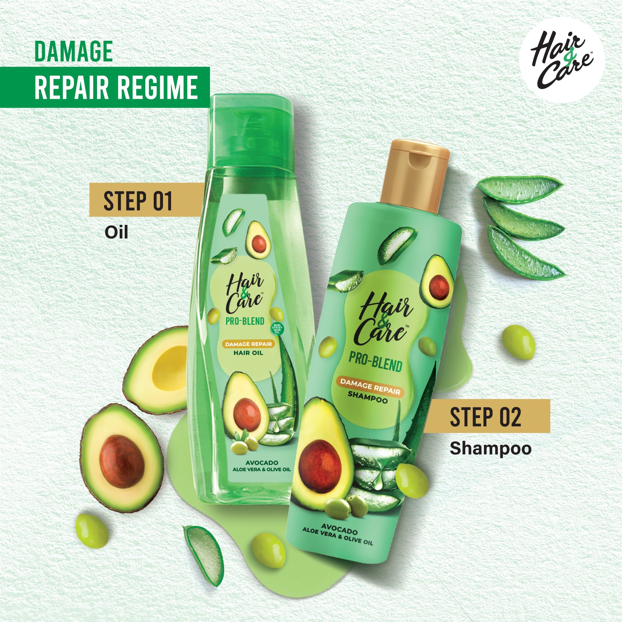 Now Say Goodbye to your hair problems with the goodness of oiling & natural ingredients! The new Hair & Care Pro Blend Oil enriched with Avocado Aloe Vera & Olive Oil repairs up to 100 % hair damage*. It is light and nonsticky and comes with the classic loved Hair & Care fragrance. This hair oil cares for dry hair frizzy hair and rough hair and helps repair these signs of damage to give soft smooth & bouncy hair. It is enriched with Avacado Aloe Vera & Olive Oil. Avocado is a natural moisturizer which strengthens hair & tames frizz. Aloe Vera soothes itchy scalp reduces dryness deep conditions the hair and protects it from sun damage thus leaving your hair soft smooth and shiny hair. Olive oil known to be rich in Vitamin E and antioxidants moisturises hair and prevents scalp irritation giving strong and nourished hair. The nonsticky and light formula of the hair oil also lets you set your hair post washing. Dab just a bit after wash and style it the way you want. Get damage free hair with the new Hair & Care Damage Repair Pro Blend NonSticky Hair Oil! *Refers to surface damage. Based on lab studies on hair breakage vs untreated hair.