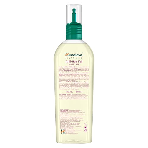 Himalaya Anti-Hair Fall Hair Oil effectively fights commonly occurring hair problems like hair fall and hair damage. Primarily crafted for daily use it is a non sticky anti hair fall oil that strengthens your roots and prevents breakage and hair fall. Our hair oil effectively fights various hair problems such as Hair Fall Dull Hair Damaged Hair Dry Hair Itchy Scalp Frizzy Hair Split Ends Rough Hair etc. It comes with a unique comb applicator that helps with deep oil penetration into the scalp. Apply the oil directly from the spill-proof applicator onto the scalp. Gently massage hair oil onto the scalp and hair. It is an effective hair growth oil fortified with natural ingredients like Bhringaraj Amla Neem Methi & Bilva. Bhringraj promotes hair growth while Amla is a well-known ingredient for hair care; it prevents hair fall & conditions your hair. It is safe to use on all skin and hair types. For best results wash off with Himalaya Anti-Hair Fall Shampoo for healthy and beautiful hair. Stimulates Hair Growth and Controls Hair FallHimalaya anti-hair fall hair oil combats hair fall and enhances hair growth. Infused with the extracts of thistles and Indian gooseberry this herbal oil strengthens the hair follicles and root shafts thus inhibiting hair fall. Indian gooseberry is a well known natural tonic that enhances hair growth. Fenugreek a rich source of lecithin and proteins nourishes the hair roots. This component also rebuilds and strengthens the hair shafts. Moreover its medicinal properties help reduce hair thinning. Regular use of Himalaya anti hairfall oil therefore keeps your hair healthy and shiny. Nourish your Scalp with Neem and Bael No more itchy dry scalps. This anti hair fall oil contains neem which combats scalp infections. Bael an essential ingredient in this Himalaya anti-hair fall hair oil acts as an astringent and is also useful in treating a scaly scalp. Apply this nourishing Himalaya herbals anti-hair fall hair oil on your scalp and gently massage in into your scalp in a circular motion to facilitate absorption of the oil. For the best effects leave it on for an hour or longer before shampooing. Buy the Himalaya anti-hair fall hair oil 200ml pack and treat your scalp to the benefits of this medicinal hair oil.Brand: HimalayaContains: Extracts of thistle Indian gooseberry fenugreek neem and bael. Strengthens hair follicles and promotes hair growthRebuilds and strengthens the root shaft. Relieves dry and itchy scalp