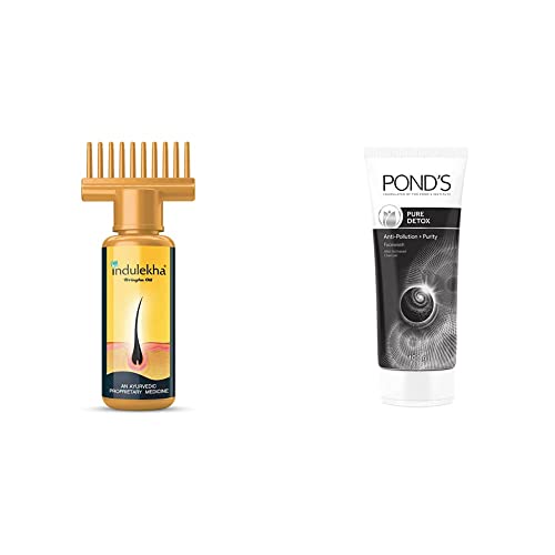 Indulekha Bhringa Hair Oil, 100ml And Pond's Pure White Anti Pollution With Activated Charcoal Facewash, 100g