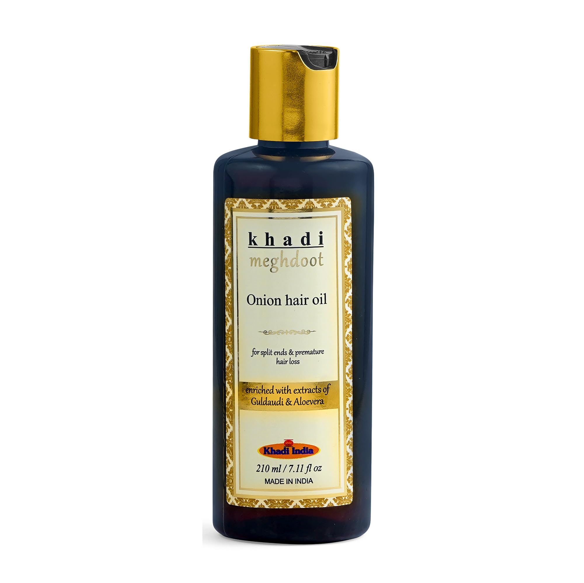 HomeHealth & PersonalHair CareHerbal Hair OilKhadi Meghdoot Onion Hair Oil for Split Ends and Premature Hair Loss with Herbal Extracts Nourishes Scalp Promotes Hair Growth and Strengthens Roots for Men and Women 210ml(Pack of 1)