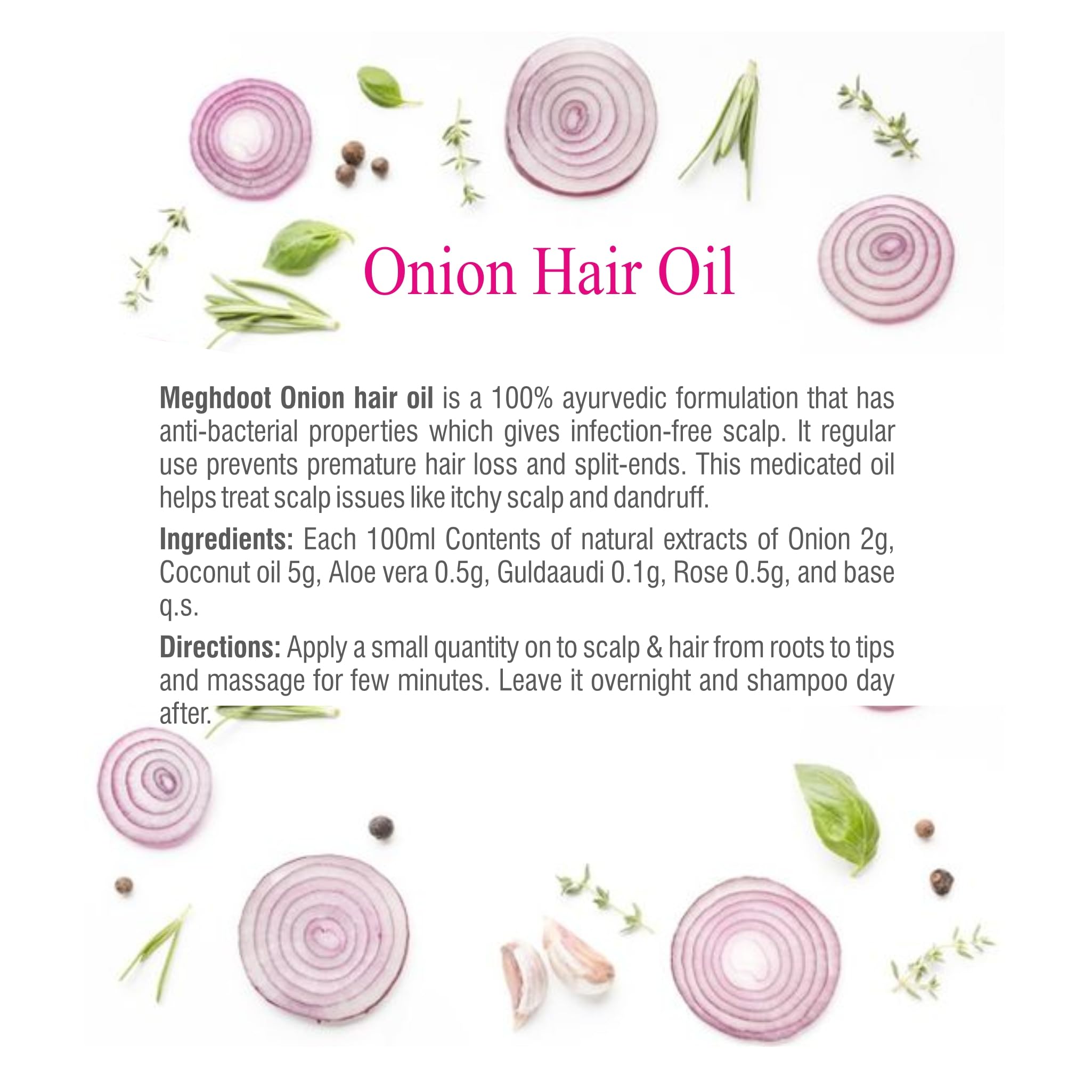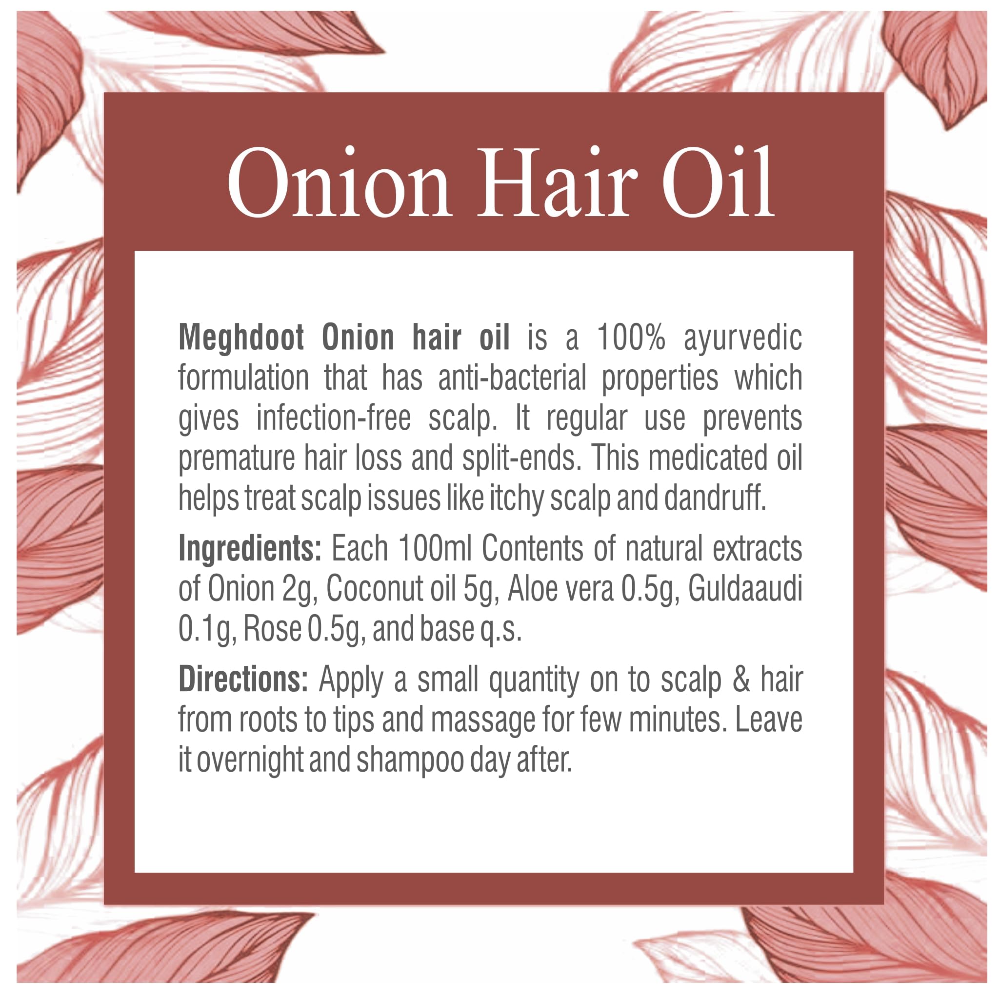 Khadi Meghdoot Onion Hair Oil for Split Ends and Premature Hair Loss with Herbal Extracts Nourishes Scalp Promotes Hair Growth and Strengthens Roots for Men and Women 210ml(Pack of 1)
