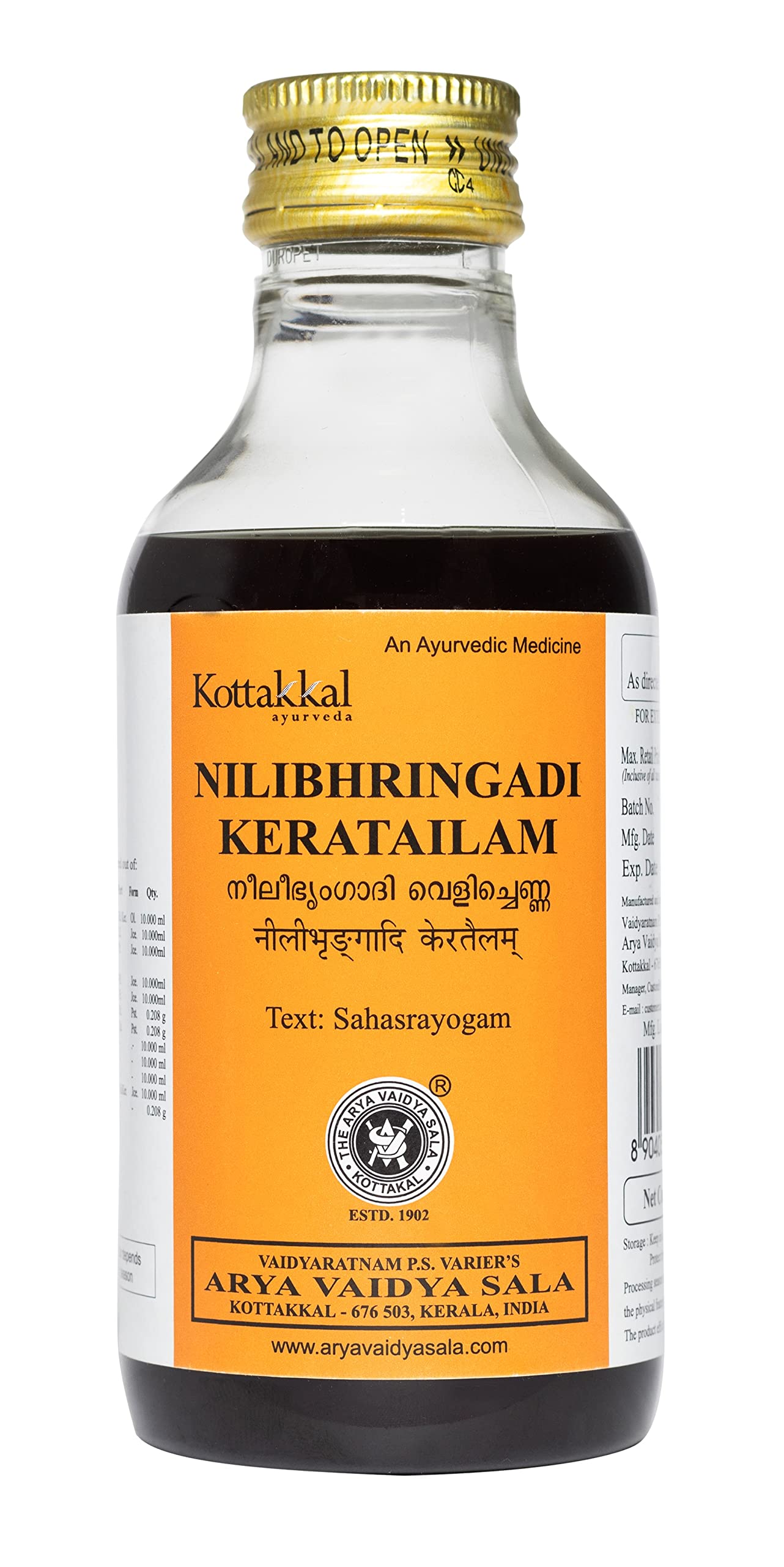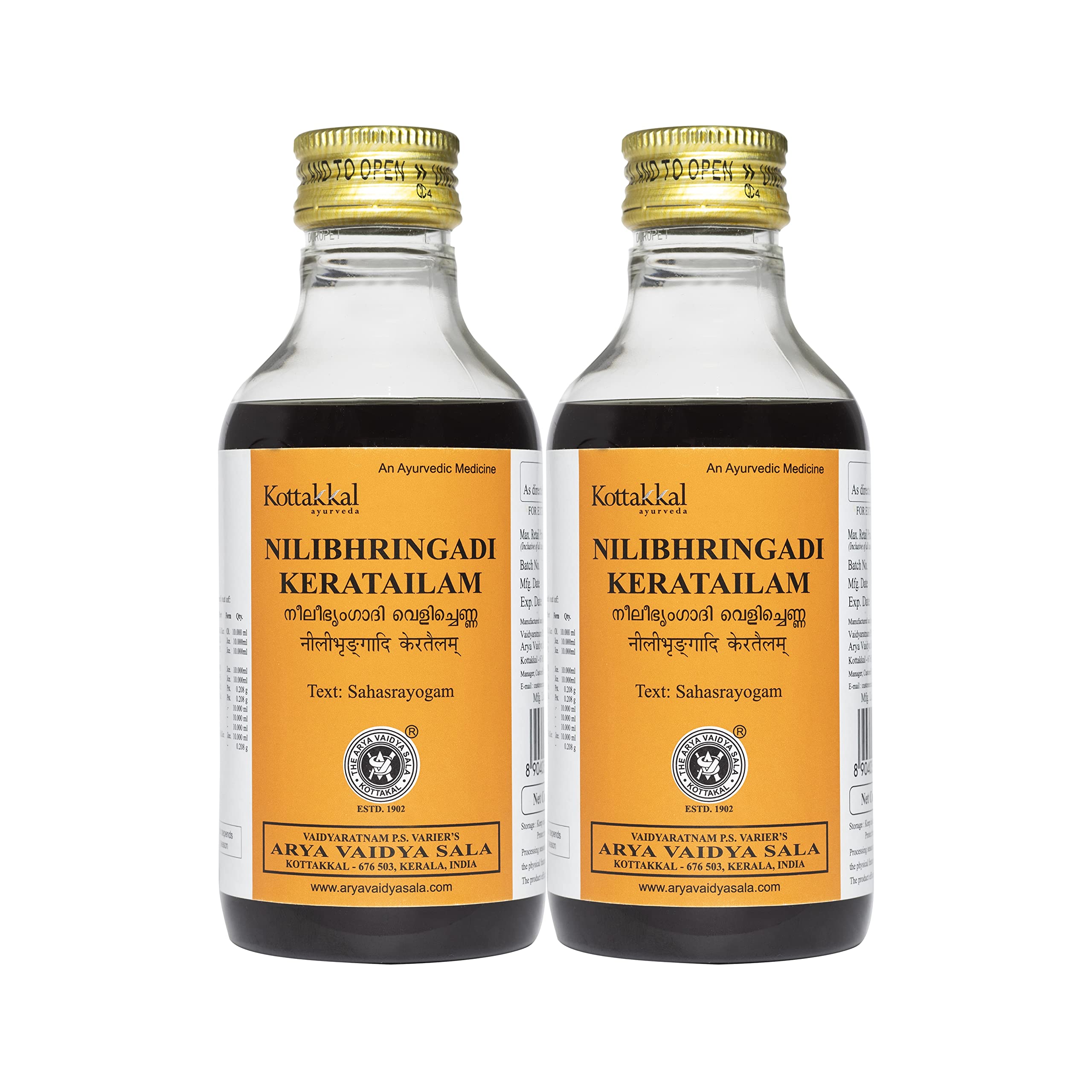 CONTENT : Kottakkal ayurveda Nilibhringadi Keratailam - 200 ml (Pack of 2)