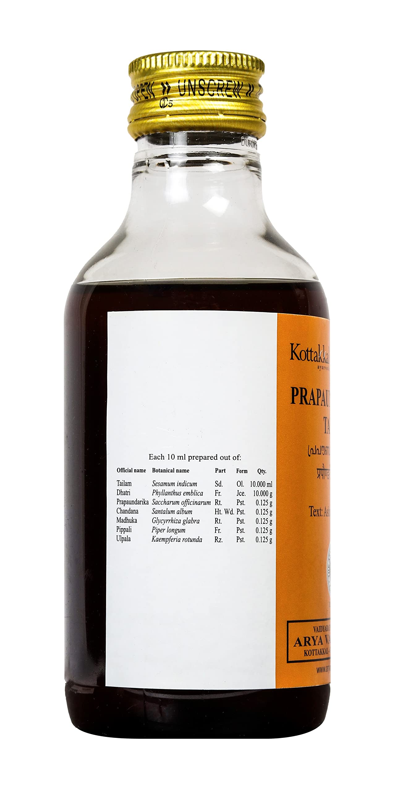Kottakkal ayurveda Prapaundarikadi Tailam - 200 ml For Healthy & Beautiful Hair - Pack of 2