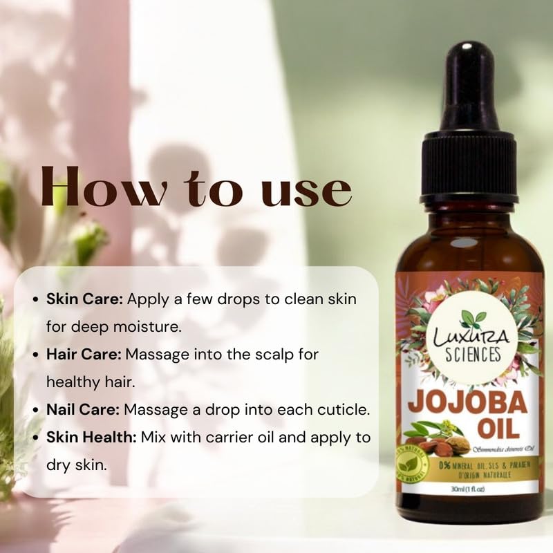 Luxura Sciences JOJOBA OIL Natural Unrefined Moisturizer for Skin Hair and NailsNatural Cold Pressed Unrefined Hexane Free Oil for Hair & Face (30 ML)
