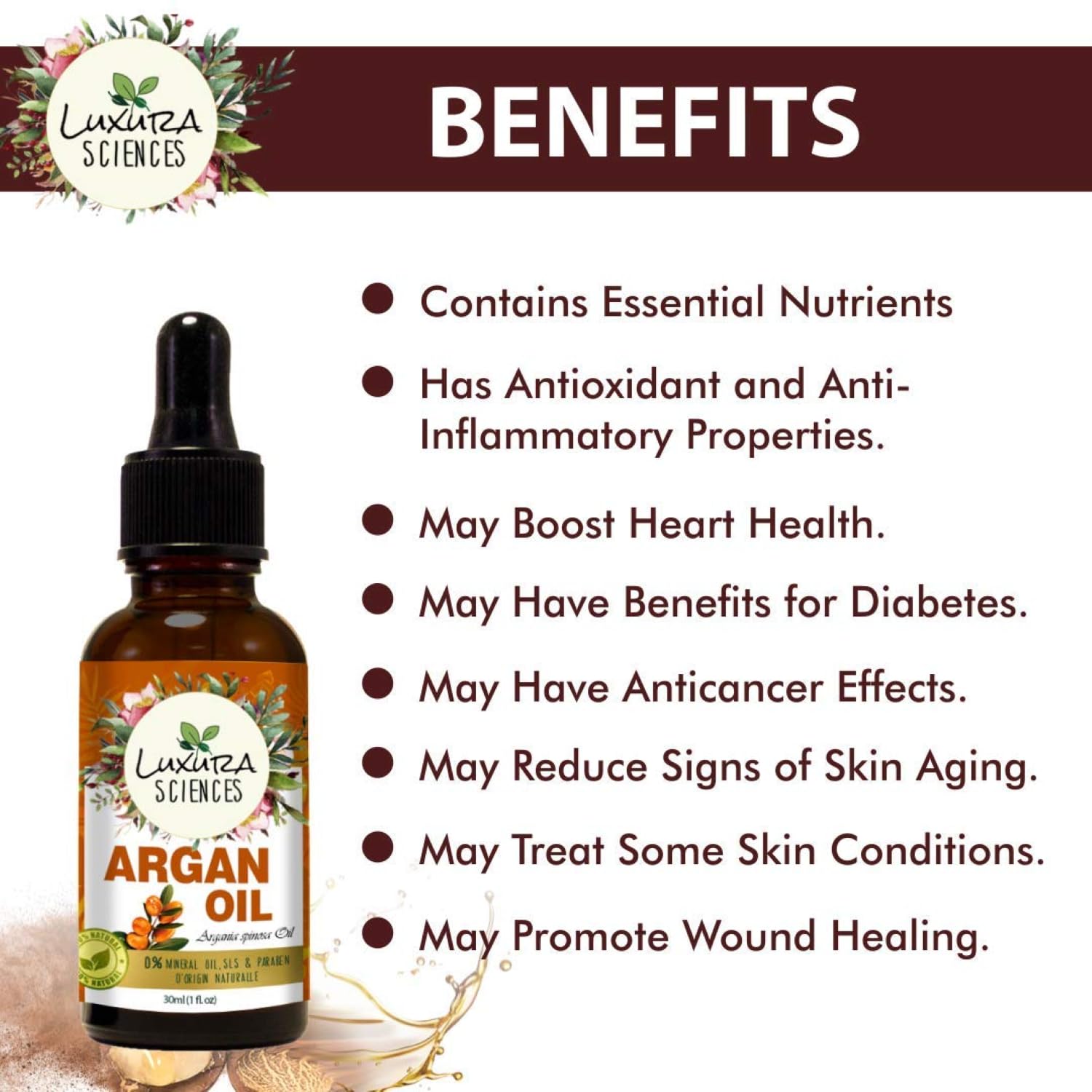 Luxura Sciences Organic Moroccan Argan Oil for Skin Nails & Hair Growth Anti-Aging Face Moisturizer Cold Pressed Hair Moisturizer Rich in Vitamin E & Carotenes (15 ML)