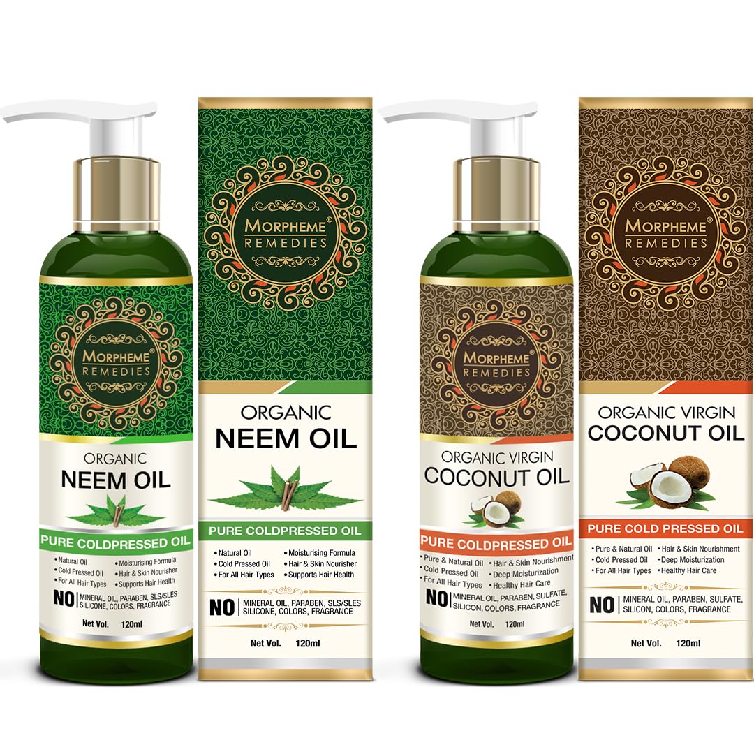 Morpheme Remedies Pure Organic Neem Hair Oil + Pure Organic Virgin Coconut Hair Oil 120ml Each