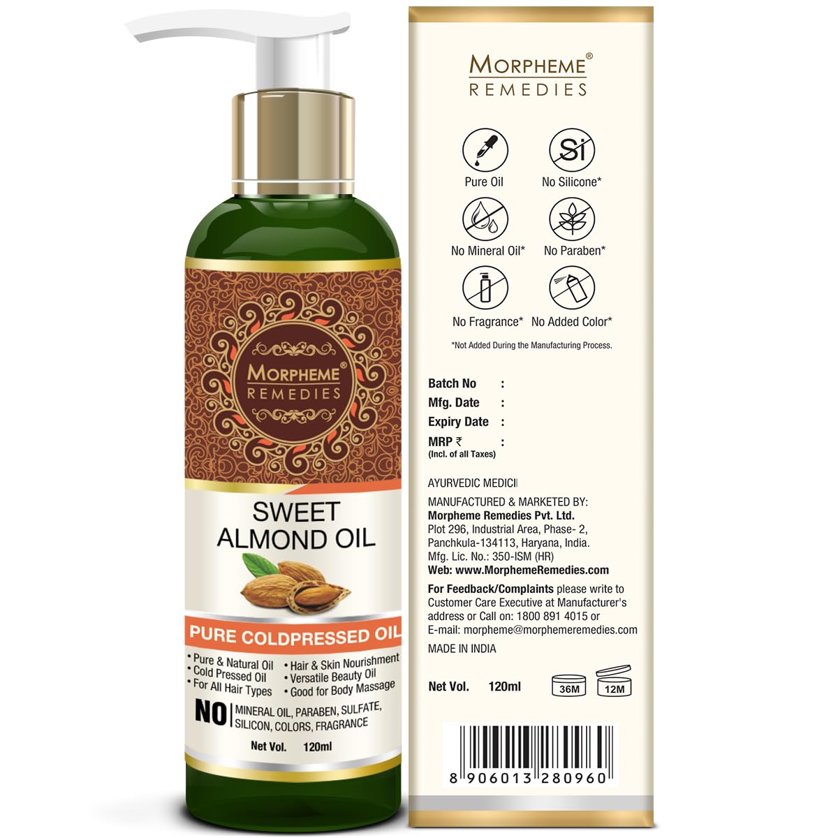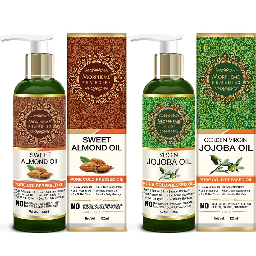 Morpheme Remedies Pure Sweet Almond Hair Oil For Hair And Skin + Golden Virgin Jojoba Hair Oil 120ml Each
