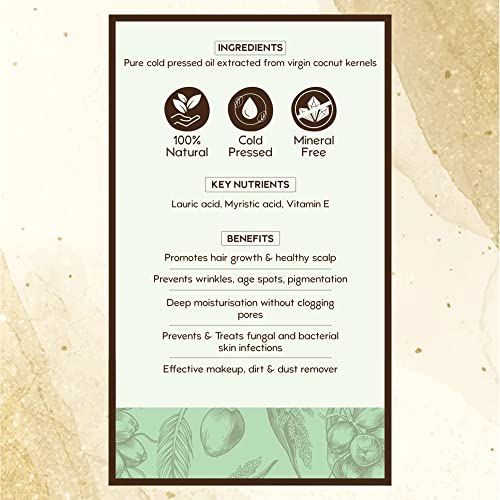 • HIGH IN ANTI-OXIDANTS EXCELLENT FOR BABIES & KIDS: Extracted out of high grade raw coconut milk kernels from Tamil Nadu & Kerala using cold pressing methods to keep anti-oxidant activity intact. Renders extreme care for dry damaged hair dry skin or winter