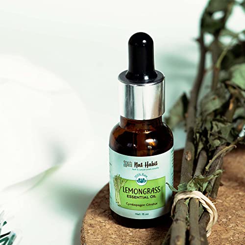 Nat Habit Pure Lemongrass Essential Oil Therapeutic Grade, Steam Distilled | Acne, Dandruff, Blemishes, Detan, Stress | Aromatherapy, Diffuser Oil, 15ml