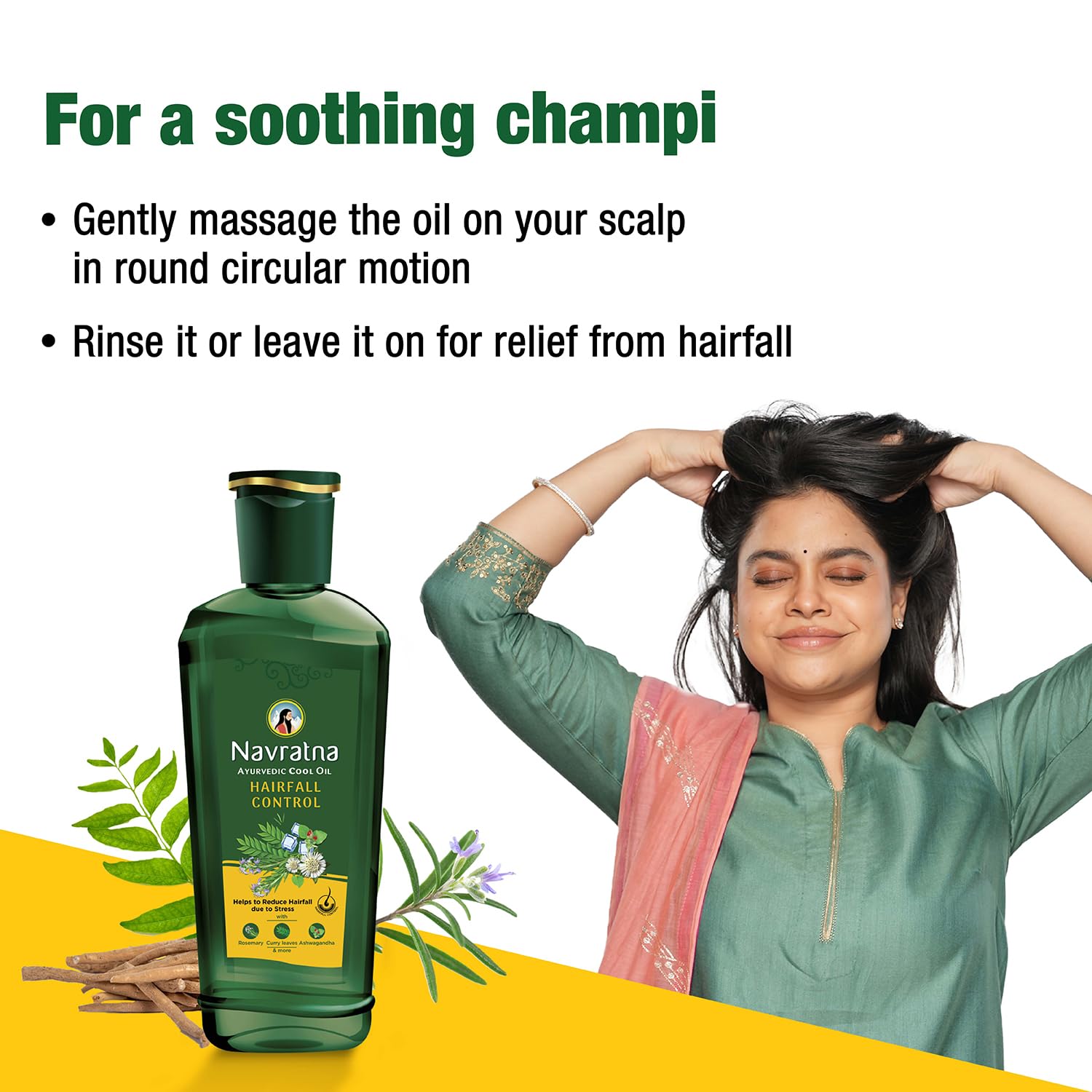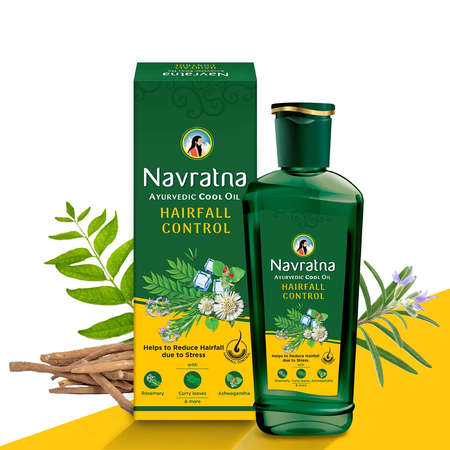 Introducing Hairfall Control Oil from Navratna- Indias leading stress-relief oil. With Navratnas expertise in stress relief regular massage with Navratna Hairfall Control Oil not only helps to reduce stress but also helps to control hairfall caused due to stress It is a combination of traditional Ayurvedic herbs like Ashwagandha that are known to relieve stress and other effective ingredients like Rosemary Curry Leaves etc. that are known to control hairfall