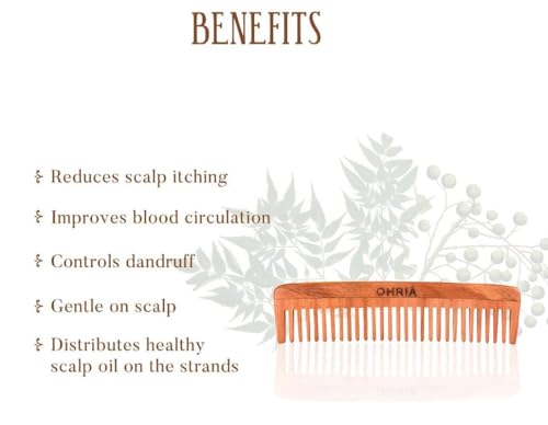 Natural comb to arrest hair fall dandruff and itchy scalp. Gentle on hair & scalp nontoxic. It prevents static hair. Natural comb improves blood circulation helps hair grow long lustrous and healthy. Combing distributes the healthy scalp oils on strands adding shine. All energies of the body converge in the head wooden comb balances all these external and internal energies whereas plastic brushes cause static.
