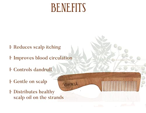 Natural comb to arrest hair fall balding dandruff and itchy scalp. Gentle on hair & scalp nontoxic it prevents static hair. Natural comb improves blood circulation helps hair grow long lustrous and healthy combing distributes the healthy scalp oils on strands adding shine. All energies converge in the head wooden comb balances all external and internal energies.