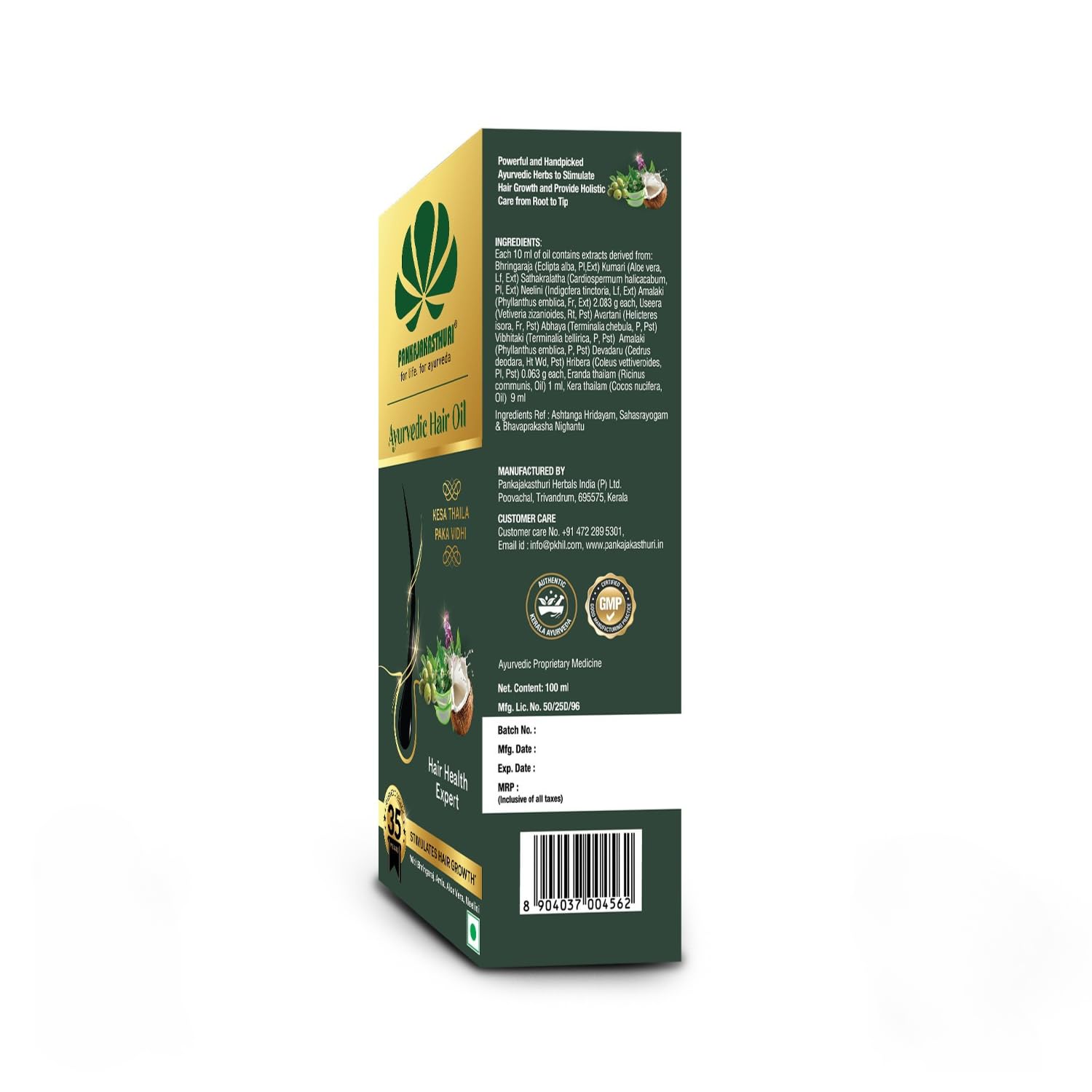 • AYURVEDIC FORMULA: Crafted using ancient 'Kesa Thaila Paka Vidhi' process from Kerala Ayurvedic tradition combining 13 powerful herbal ingredients for complete hair care.