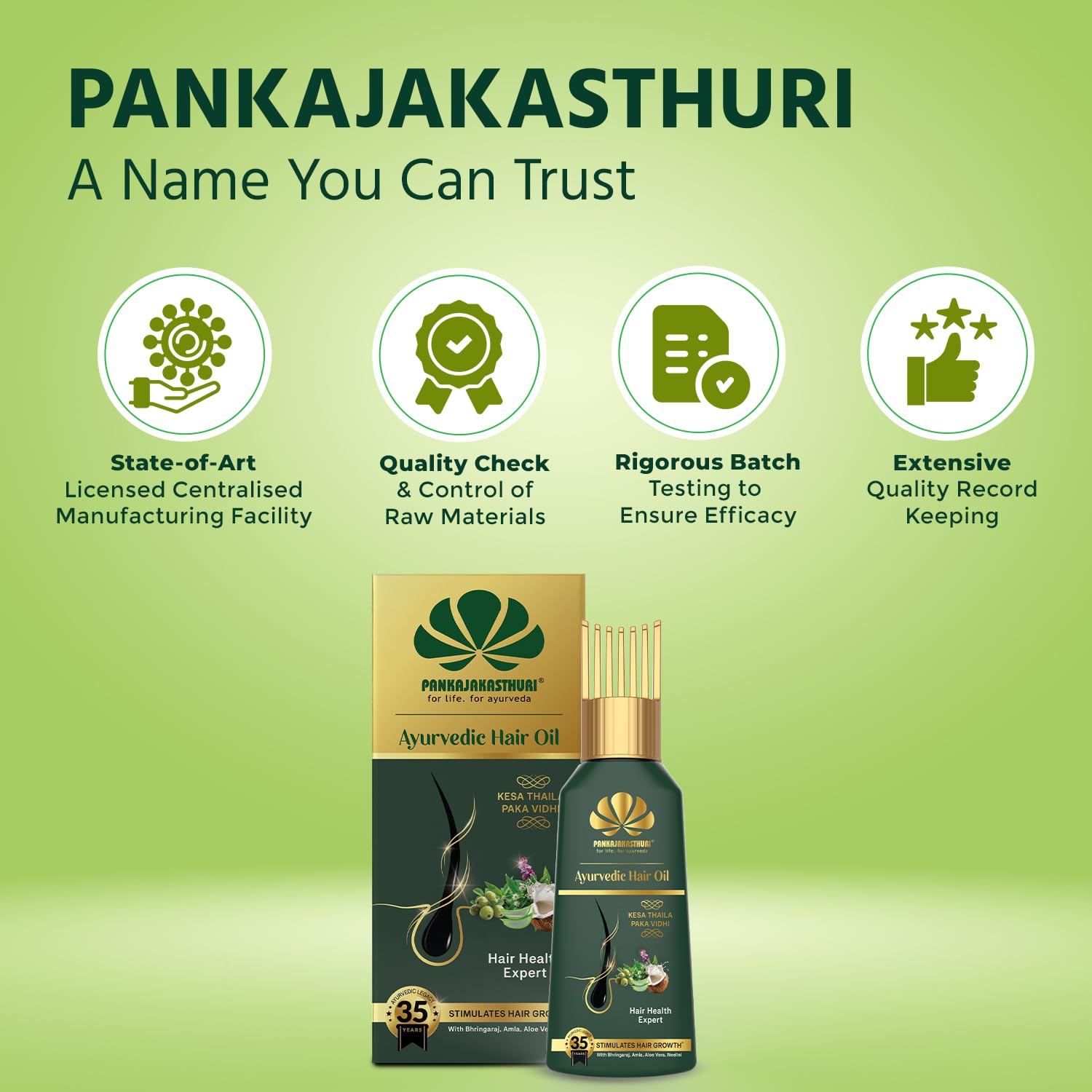 Pankajakasthuri Ayurvedic Hair Oil - Herbal Formula with Bhringaraja | Aloe Vera | Amla | Coconut Oil - 100ml