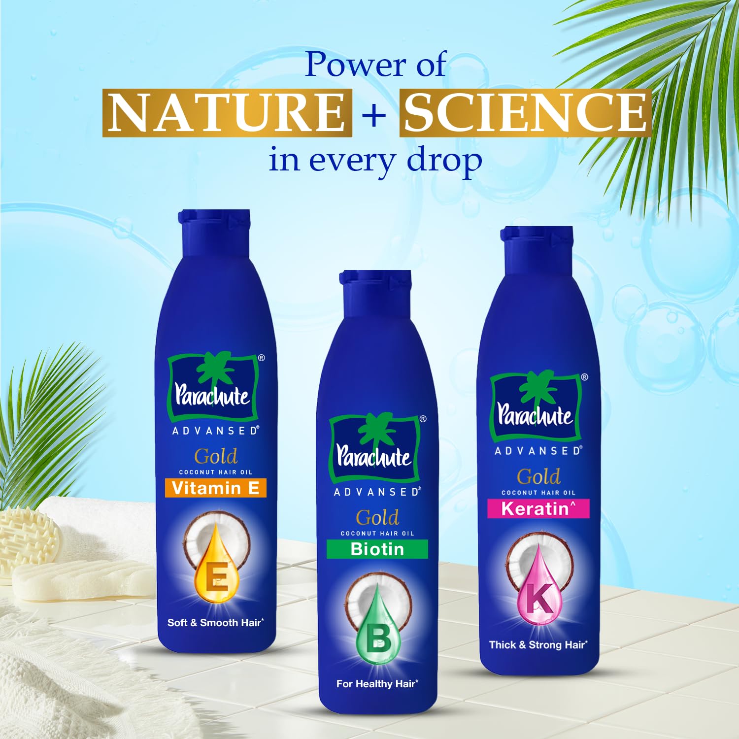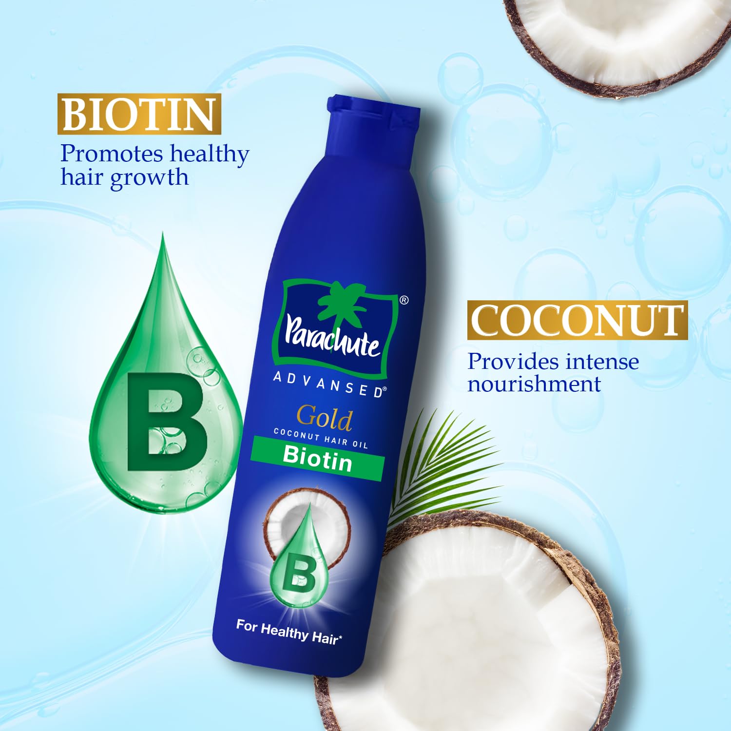 Parachute Advansed Biotin & Coconut Hair Oil combines the nourishing goodness of coconut oil with the strengthening benefits of biotin providing essential care for hair that needs volume and strength. This unique formula penetrates up to 10 layers deep delivering essential nutrients to your hair and supporting healthy growth. Biotin helps reduce breakage making your hair fuller and stronger while the coconut oil moisturises and conditions deeply. Ideal for thin weak brittle hair Parachute Advansed Biotin & Coconut Hair Oil helps promote healthier fuller-looking locks. This oil is also free from parabens and silicones hence you get safe gentle care for your hair. To use gently massage this oil into your scalp and hair leave it on for 30 minutes and then rinse it out with your favourite shampoo. For best results use 2-3 times per week to enjoy healthier more manageable hair.
