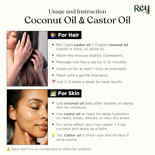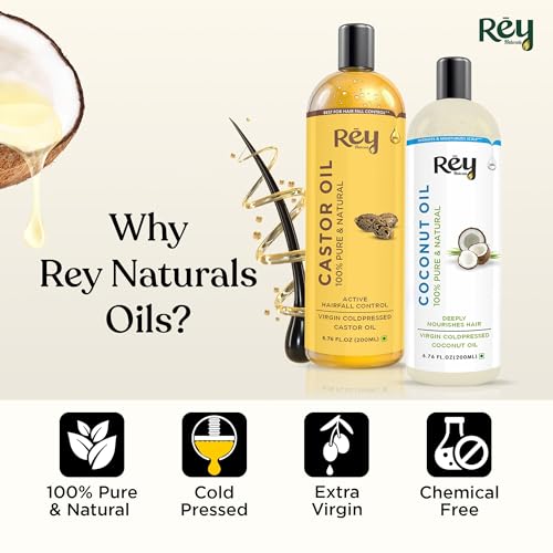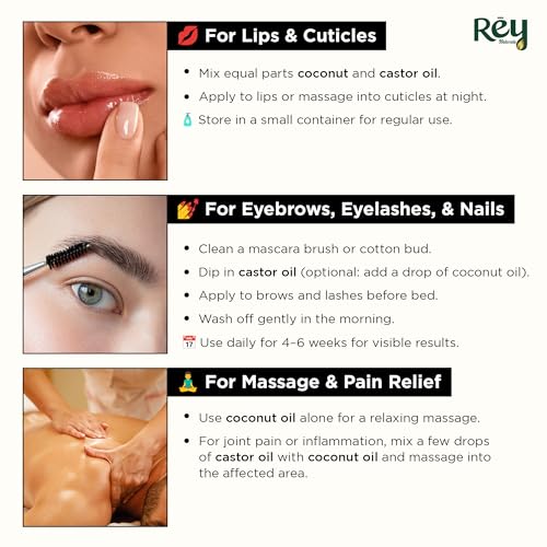 ENHANCE HAIR GROWTH: Customers love the high quality and effectiveness of Rey Castor and pure coconut Hair Oils. With natural ingredients like castor oil and coconut oil this product helps in hair growth making your hair look shiny soft and healthy. Perfe