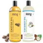 Rey Naturals Cold Pressed Castor Oil & Virgin Coconut Oil For Hair Growth - 200ml×2 | Coconut Oil For Skin Care | Castor Oil For Skin, Eyelashes & Eyebrows | Non Comedogenic Hair Oil For Hair Growth