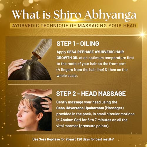 HomeHealth & PersonalHair CareHerbal Hair OilSESA Ayurvedic Rephase 2 Step Hair Oil Growth Kit With 26 Herbs And 6 Essential Oils Promotes Hair Growth Help Reduces Hair Fall With Massager Natural Hair Oil For Women And Men, 100 Ml