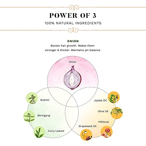 3 Powerful Actives: The Onion Hair Oil is formulated with three powerful active ingredients: natural onion extracts Ayurvedic herbs like Bhringraj and pure cold-pressed oils. These ingredients work together to nourish and strengthen your hair from root to