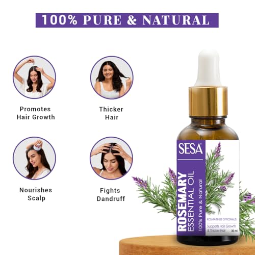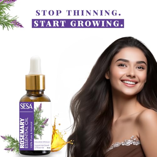 HomeHealth & PersonalHair CareHerbal Hair OilSesa Rosemary Essential Oil For Hair Growth Nourishes Skin Hair Fall Control Oil For Women and Men 100% Pure & Natural Rosemary Oil, 30 ml