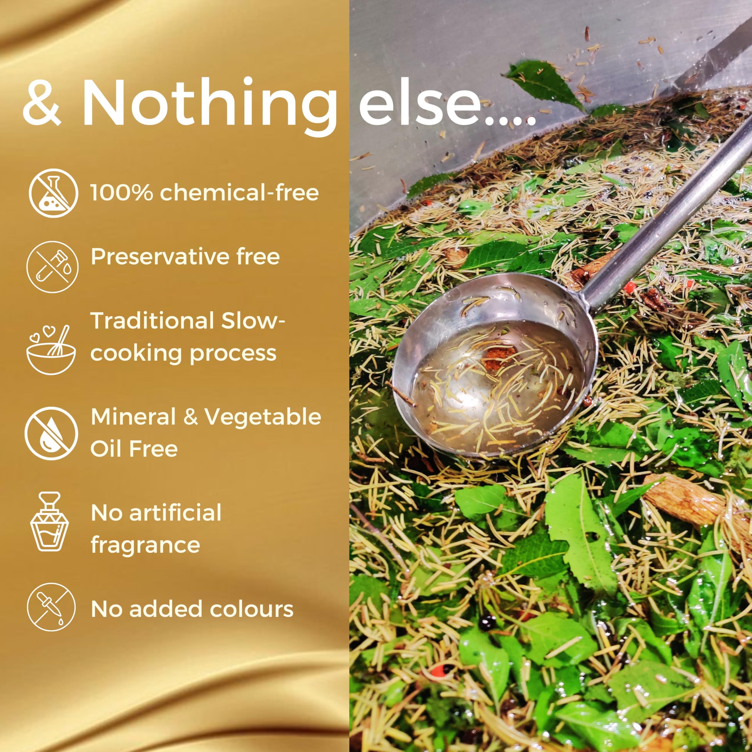 BOOSTS HAIR STRENGTH WITH NATURAL INGREDIENTS: Strengthen your hair from root to tip with a unique mix of ginger amla and pippali and revitalizing ayurvedic hair oil promotes robust and reduces breakage ensuring your locks are strong and resilient.