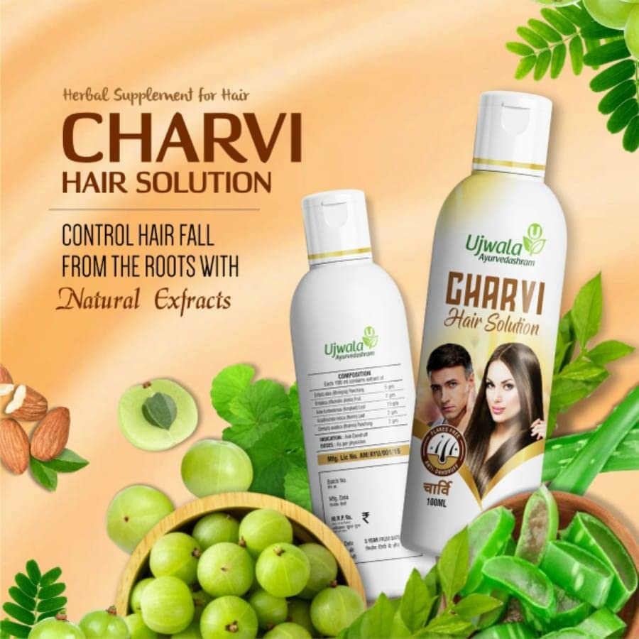 Featuring the benefits of natural ingredients the Ujwala Ayurvedashram Charvi Hair Solution poses no threat to your hair. With the extracts of neem bhringraj amla korphad and brahmi this hair oil can help reduce your hair problems without causing any nega