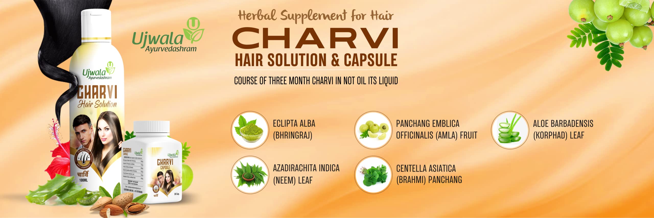Charvi Hair Solution And Charvi Capsule are Research & manufactured by M/s Ujwala ayurvedashram The award winning manufacturer. Ujwala ayurvedashram has got 1st prize as BEST ENTERPRENUR OF MAHARASHTRA FOR 2018.