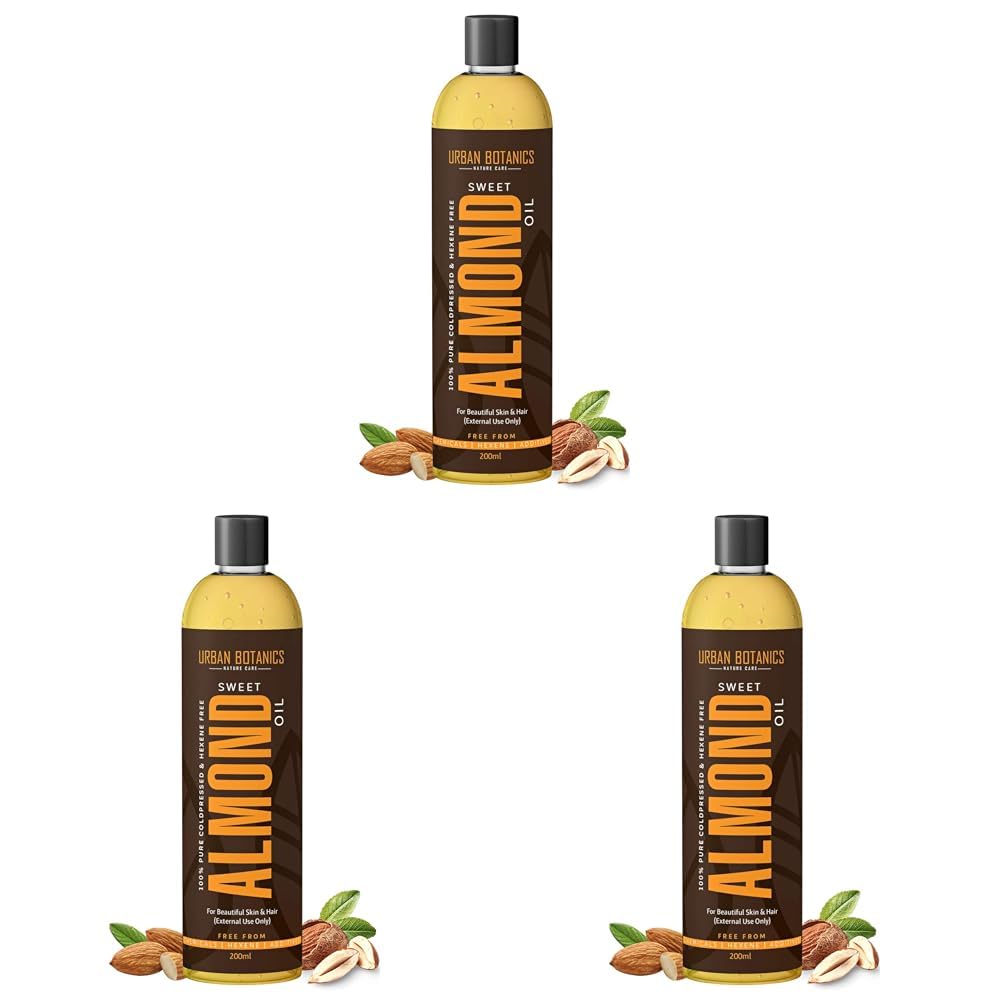 UrbanBotanics Pure Cold Pressed Sweet Almond Oil for Hair and Skin 200ml (Odorless) (Pack of 3)