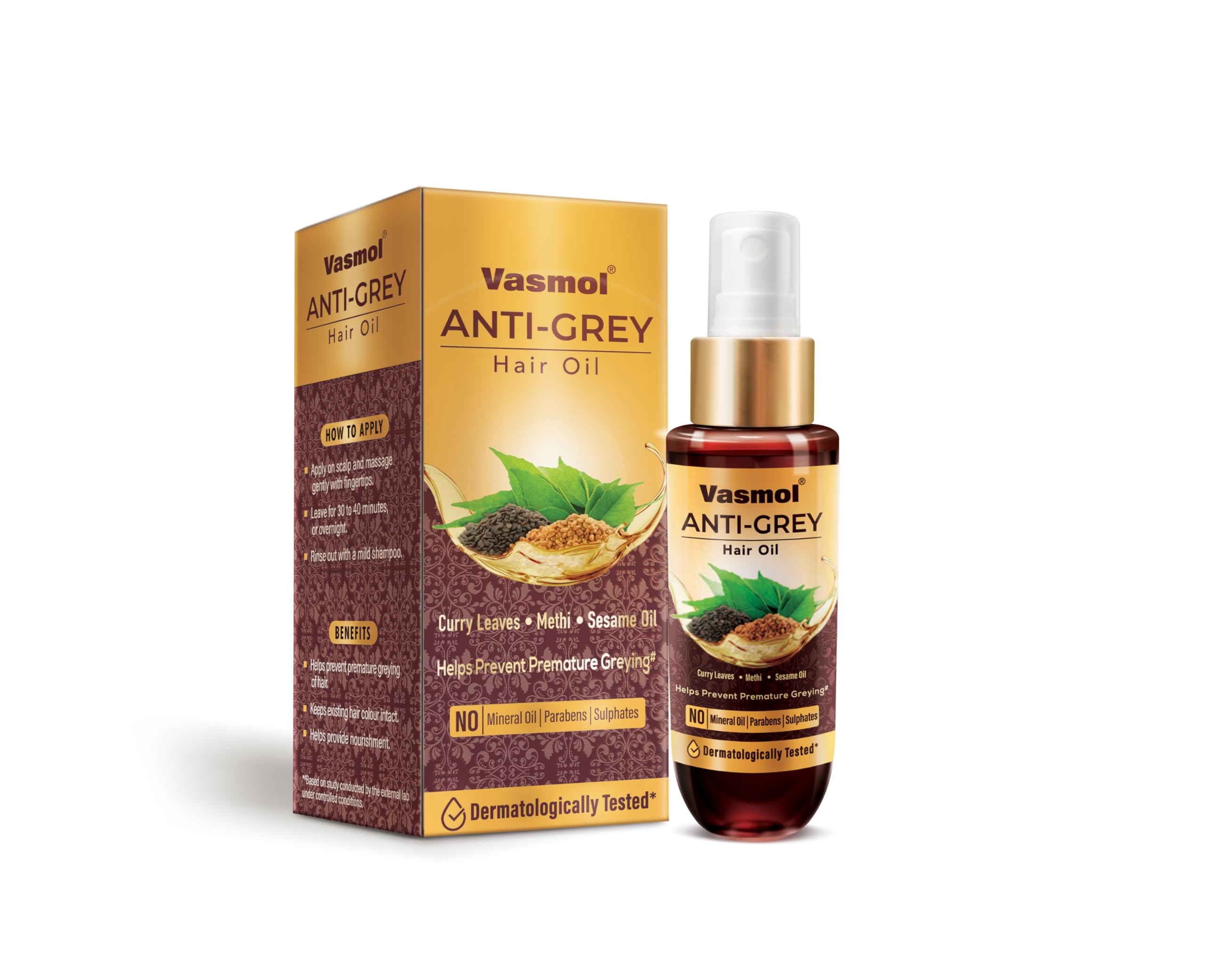 Vasmol Anti Grey Hair Oil 100 ml I Prevents Prematire Greying I NO mineral oil Parabens Sulphates I Dermatologically tested