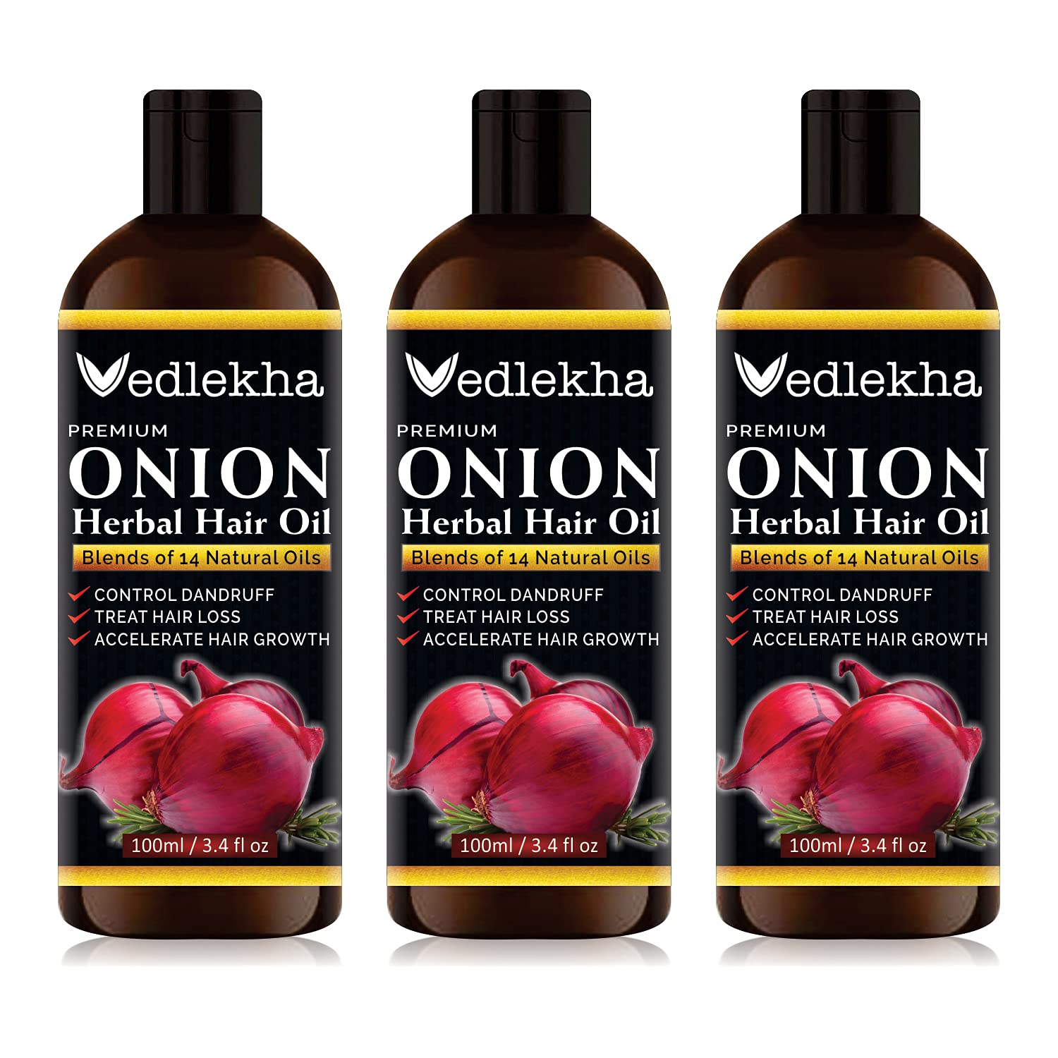 Vedlekha Onion Hair Oil with Red Onion Extract & Anti Dandruff 100ml Packof 3 Bottle (300ml)
