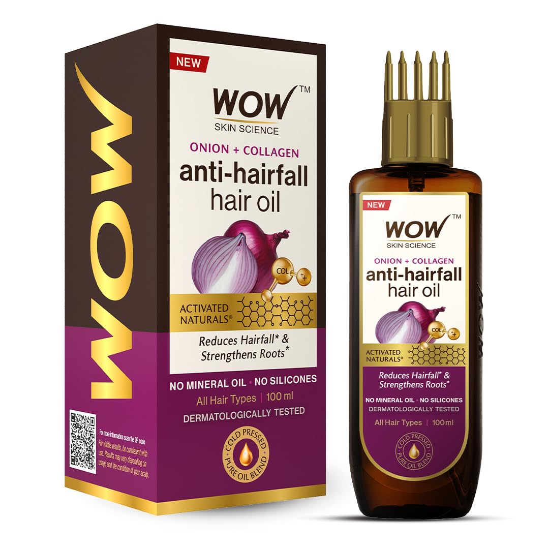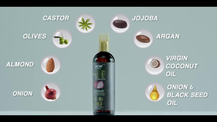 Give your hair the necessary nourishment to help fight hair and scalp problems with WOW Skin Science onion black seed hair oil with comb applicator. It is a nutrient-rich oil that provides soothing care to dull lifeless weak hair and tired scalp to help transform their texture and health. It contains a blend of 7 cold-pressed oils like sweet almond oil extra virgin olive oil castor oil jojoba oil moroccan argan oil coconut oil onion black seed oil. The built-in comb applicator helps spread the oil evenly and avoid any spillage. It gently detangles hair that helps reduce hair fall. Regular head massage with warm oil helps improve blood circulation in the scalp. Apply this oil on the hair strands to smooth down and seal the cuticles and restore hairs natural shine and softness. Use this oil to help tame frizz reduce hair fall repair damaged strands and boost texture and shine. It is hexane-free non-sticky and non-greasy hair oil. It is fast-absorbing and gets easily soaked into the scalp. Suits all hair types. Get strong and lustrous hair with WOW Skin Science onion black seed hair oil with comb applicator. The built-in comb applicator helps detangle hair and spread the oil evenly onto each strand. This hair oil works to condition your weak strands and moisturize your scalp. Light non-sticky hair oil can be used on very curly and dry strands after shampoo as a serum and hair protector. Regular use helps to improve hair texture and strengthen the strands.