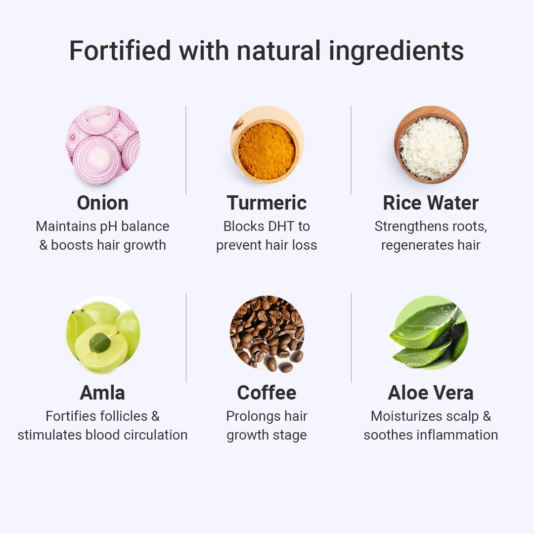 ENRICHED WITH NATURAL INGREDIENTS: In addition to the powerful actives our hair growth serum is enriched with natural ingredients such as rice water onion coffee and turmeric. These ingredients are packed with essential nutrients that help strengthen hair