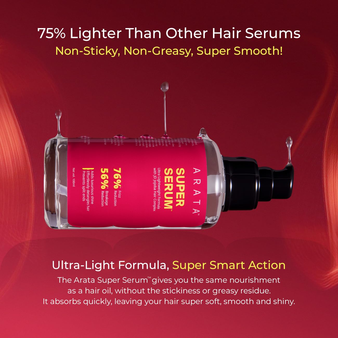 Ultra Lightweight & Non Greasy The Arata Super Serum is enriched with JD Jojoba Hair Complex a fusion of hair loving oils blended in just the right ratio to provide all the benefits of a traditional hair oil but in the lightweight consistency of a serum.