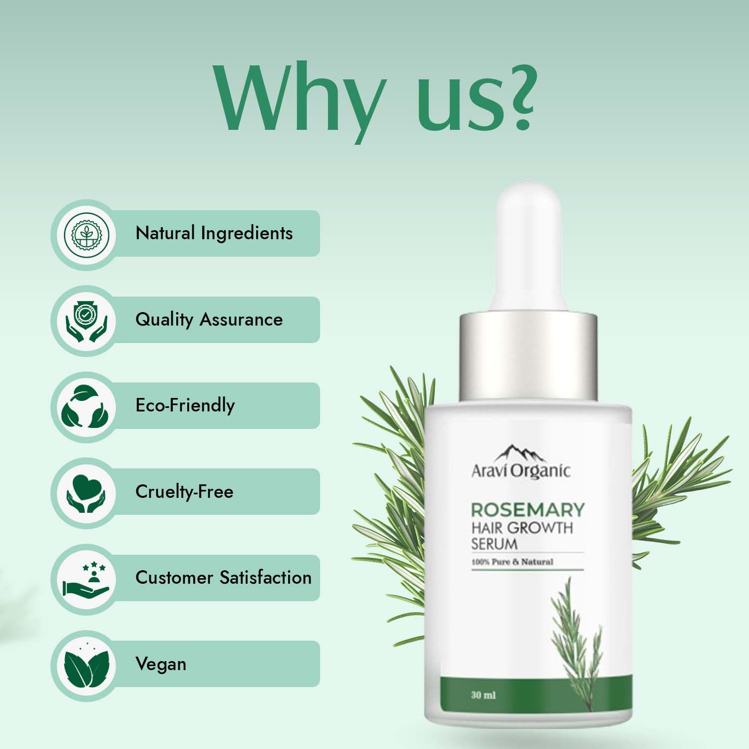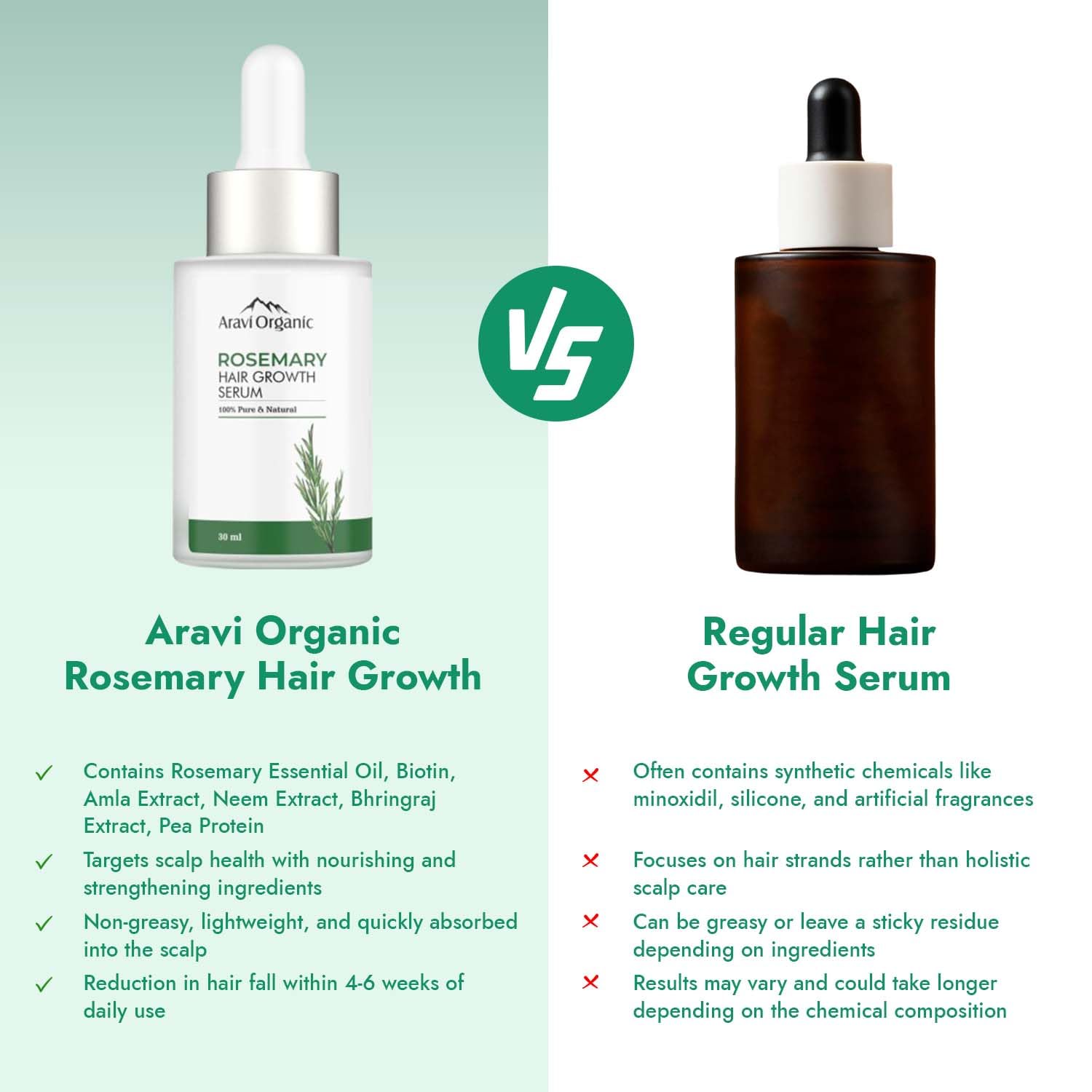 Aravi Organic Rosemary & Biotin Hair Growth Serum - For Hair Growth Strengthens Hair and Nourishes Scalp - 30 ml